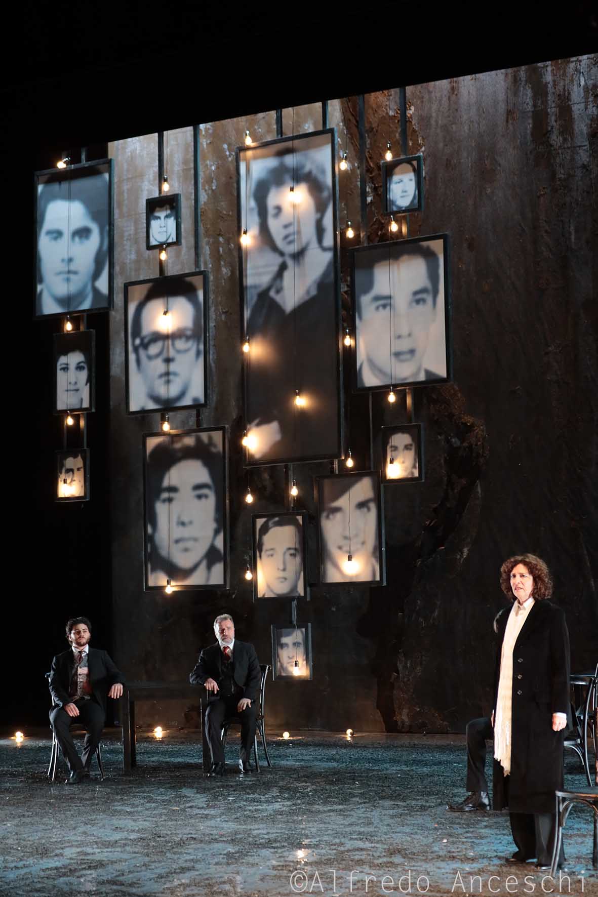 Non a caso i momenti più interessanti dello spettacolo sono i monologhi, quello di Neri Marcorè e quello di Rosanna Naddeo, che interpreta una madre argentina che deve affrontare il rapimento del figlio: gli attori sono fermi e il potere viene dato alla parola.