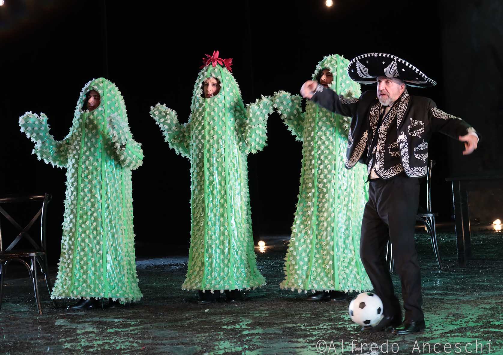 Il testo è già di per sé complesso da mettere in scena a causa di questo collage poco coeso; il fatto che i pezzi siano intervallati poi da canzoni latineggianti, a volte drammatiche e a volte esageratamente comiche, non aiuta la schizofrenia dello spettacolo. Si passa da momenti toccanti a canzonette in costume da cactus in pochi minuti.