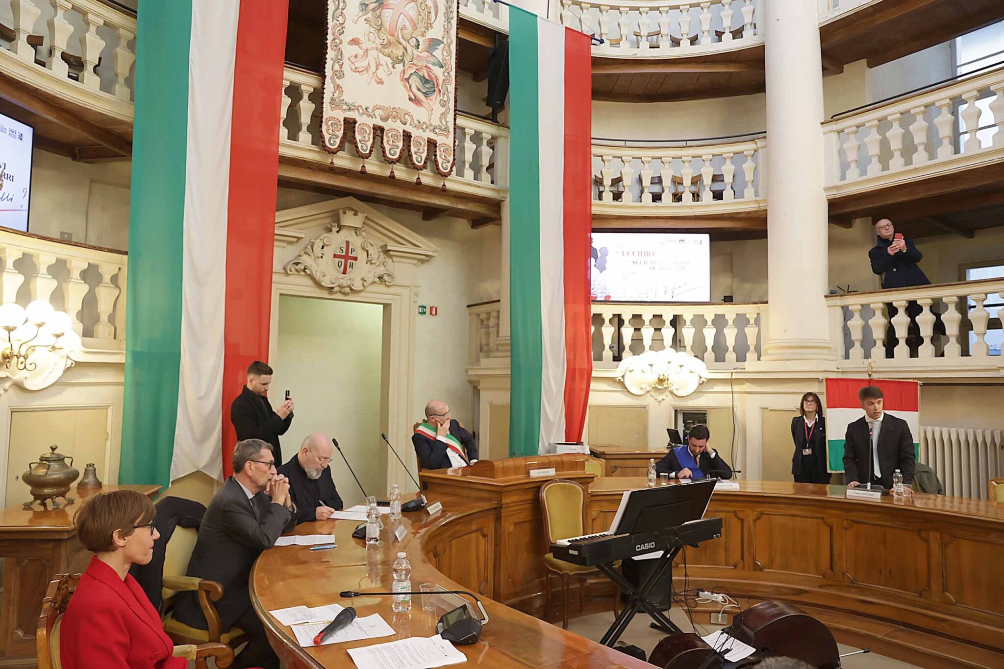 Il sindaco Luca Vecchi è intervenuto questa mattina, nella Sala del Tricolore del Municipio, alla cerimonia di commemorazione degli 80 anni dall’eccidio dei sette Fratelli Cervi e di Quarto Camurri, caduti per mano fascista il 28 dicembre del 1943: Agostino, Aldo, Antenore, Ettore, Ferdinando, Gelindo e Ovidio (i sette fratelli Cervi), vennero fucilati insieme a Quarto Camurri nel poligono di tiro cittadino.