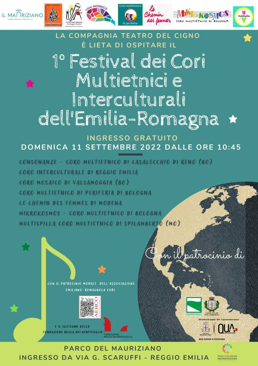 Di seguito i cori che prenderanno parte all’evento patrocinato, tra gli altri, da AERCO – Associazione emiliano-romagnola Cori e dal Centro Interculturale Mondinsieme di Reggio Emilia: Consonanze – coro multietnico di Casalecchio di Reno (BO), Coro Interculturale di Reggio Emilia, Coro Mosaico di Valsamoggia (BO), Coro Multietnico di Periferia di Bologna, Le Chemin des Femmes – coro di donne di Modena, Mikrokosmos – Coro Multietnico di Bologna e MultiSpilla coro multietnico di Spilamberto (MO).