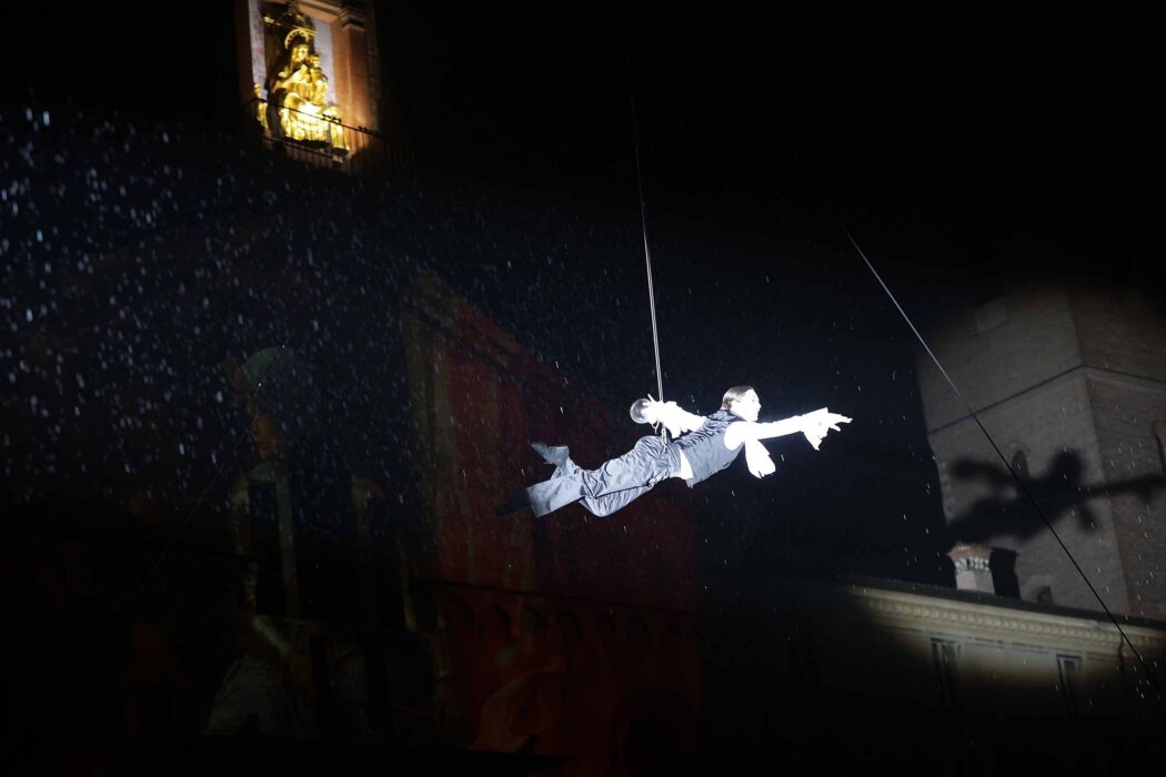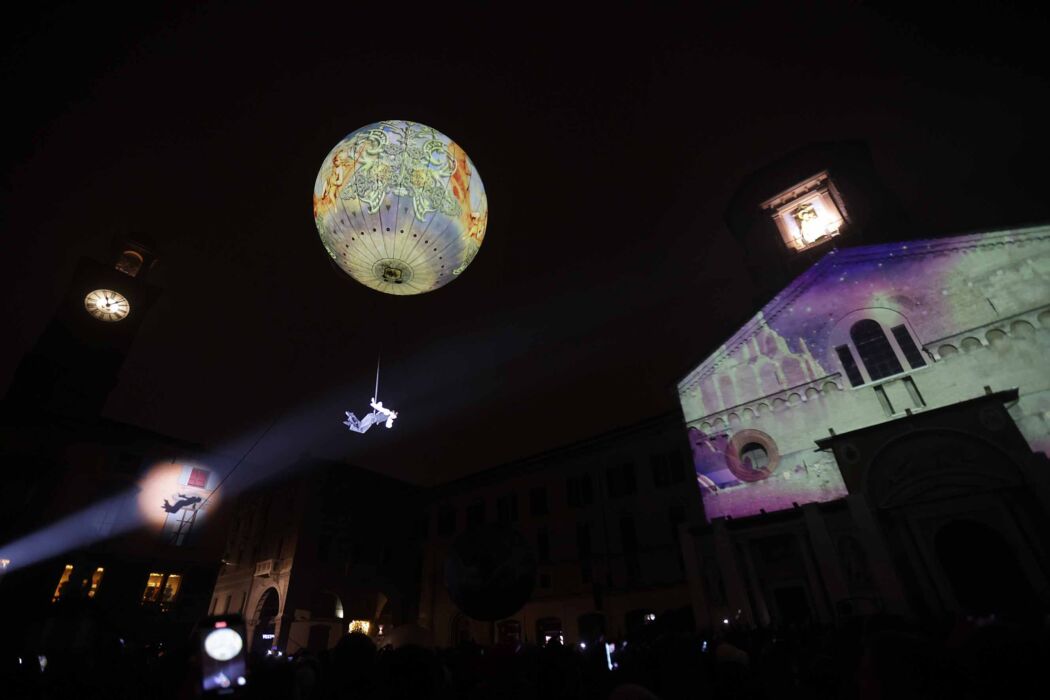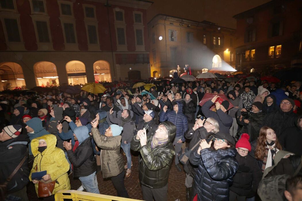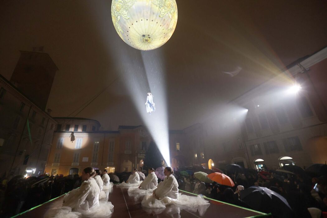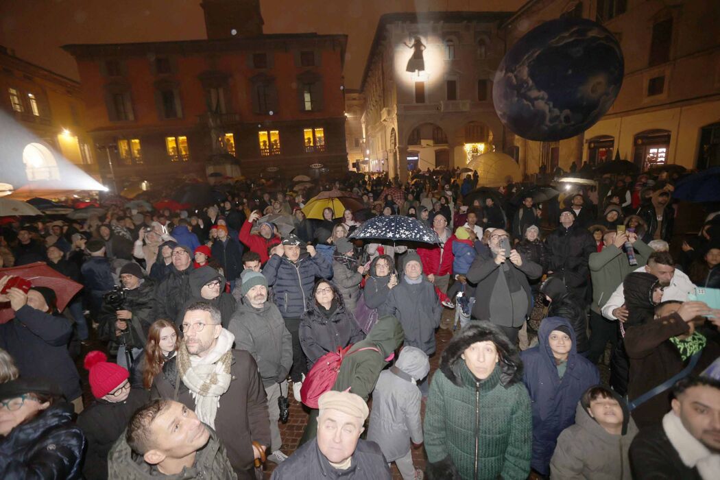 La pioggia non ha rovinato il suggestivo spettacolo per salutare l’anno nuovo in piazza Prampolini promosso dal Comune di Reggio Emilia, curato e coordinato da Ater Fondazione, con il sostegno di Iren in un’ottica di valorizzazione culturale del territorio, e realizzato con il contributo di realtà reggiane quali MaMiMò e MMContemporary Dance Company, sia per la parte artistica, sia per le tecniche.