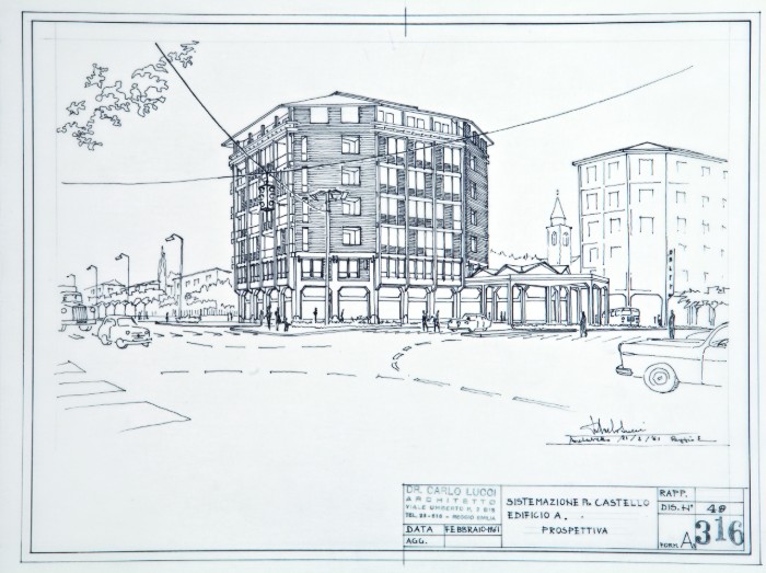 Carlo Lucci, Condominio a Porta Castello, disegno prospettico, 1958