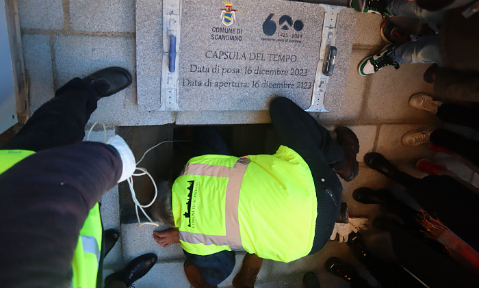 “Bentornate e bentornati in piazza Spallanzani”, ha esordito il sindaco Matteo Nasciuti aprendo una cerimonia formale e istituzionale ma che ha previsto tra le varie iniziative anche un gesto simbolico come quello dell’interramento di una capsula del tempo: un contenitore metallico che custodisce elementi simbolici della Scandiano del 2023, e che dovrà essere aperto tra esattamente cento anni. All’interno sono stati inseriti i messaggi di bambini e bambine per i loro coetanei del futuro, sementi delle uve e delle piante attuali (tra cui le ghiande della Grande Quercia), le tessere associative delle tante associazioni del territorio, magliette, gagliardetti, una lettera del sindaco, una carta d’identità di Scandiano e molto altro ancora – il tutto sottovuoto e in atmosfera protetta da umidità e agenti esterni.