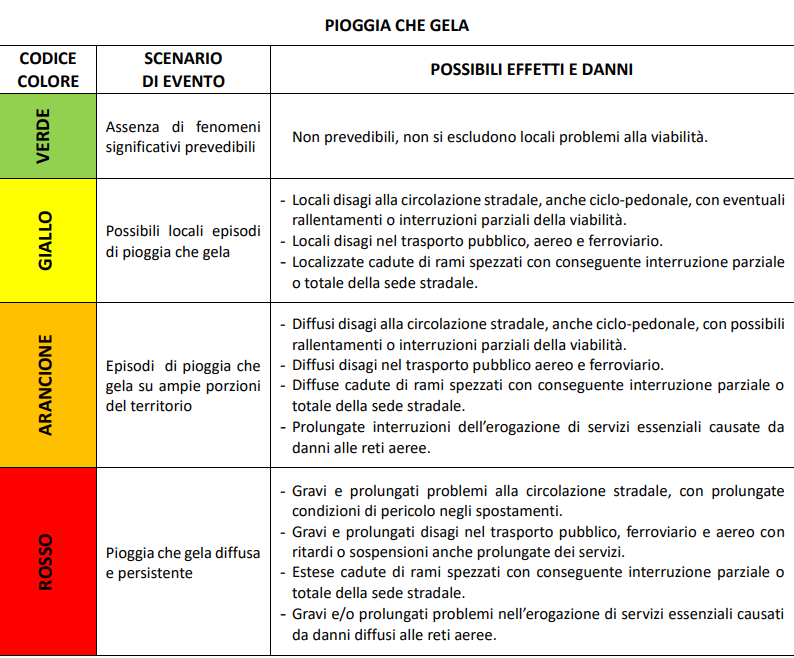 allerta gialla per pioggia che gela sulle zone C1, E1, E2, G1, G2, H1.
