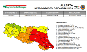 Nella nostra regione allerta rossa per stato dei corsi d’acqua e rischio frane in tutta la Romagna (tranne il Ferrarese) e nel Bolognese, arancione nel Reggiano e nel Modenese.