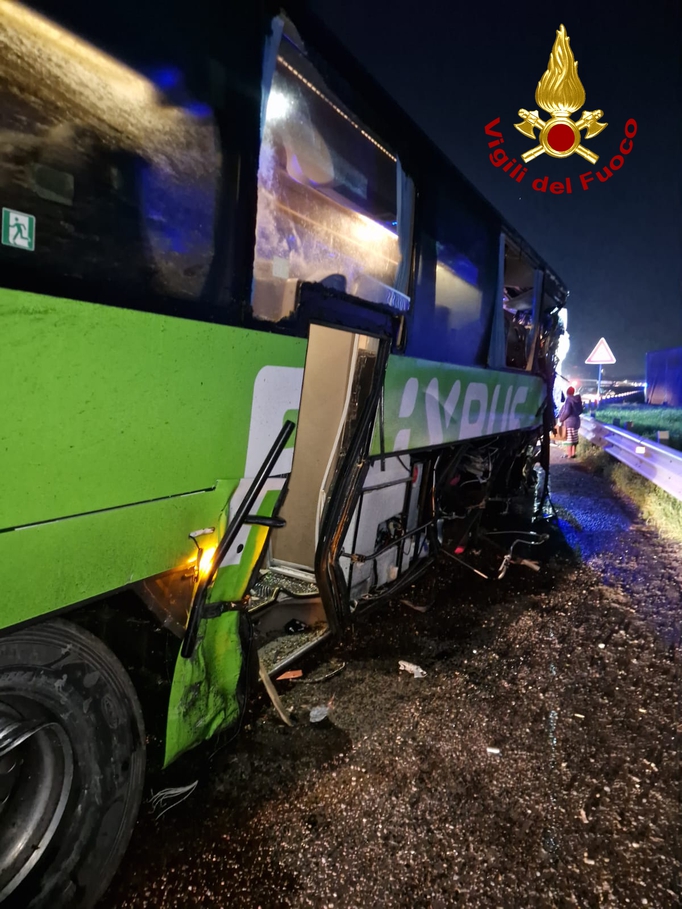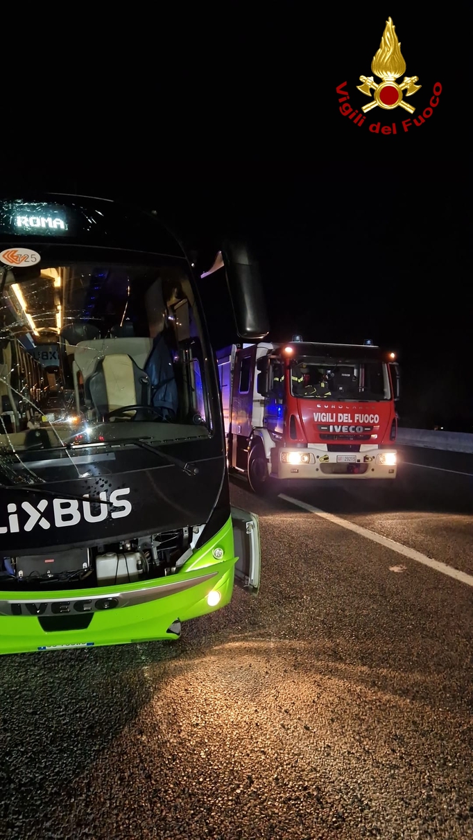 Nella notte grave incidente stradale sulla Autostrada del Sole A1 al km 174, in direzione Bologna. Erano circa le 2.15 quando un autobus della compagnia Flixbus ha impattato contro la barriera laterale per cause al vaglio di accertamenti da parte delle forze dell’ordine, anche se pare, da una prima ricostruzione della dinamica, che l’autobus abbia fatto tutto da solo, l’autista avrebbe perso il controllo per poi finire contro il new jersey in cemento sul lato destro della carreggiata.