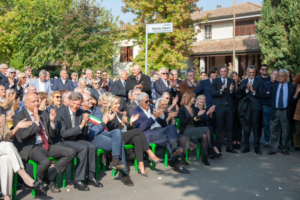 “Piazzale Chiarino Cimurri, uomo di sport. 1938-2004”. Poche parole, sul cartello di toponomastica appena scoperto, per ricordare a tutti quella che il sindaco Luca Vecchi oggi ha definito “una persona di principi solidi, piena di entusiasmo, capacità di relazioni e d’impresa, e di gioia di vivere, a cui Reggio Emilia è grata: un uomo che ha voluto bene alla sua città, dandole prestigio e che non si è risparmiato in nulla per uno sport pulito e portatore di valori universali”.