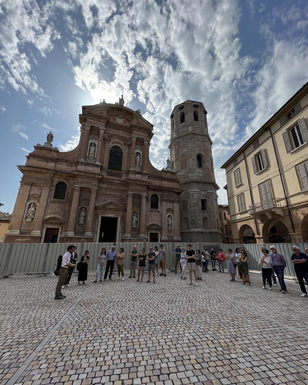 Il sindaco di Reggio Emilia, Luca Vecchi, ha postato questo sabato 8 luglio sui social: “Mattinata di visite al cantiere di Piazza San Prospero. I lavori procedono ed è iniziata la posa della nuova pavimentazione in porfido anche nella parte del plateatico centrale della piazza. La nuova piazza sarà bellissima. Ormai manca poco alla riapertura”.