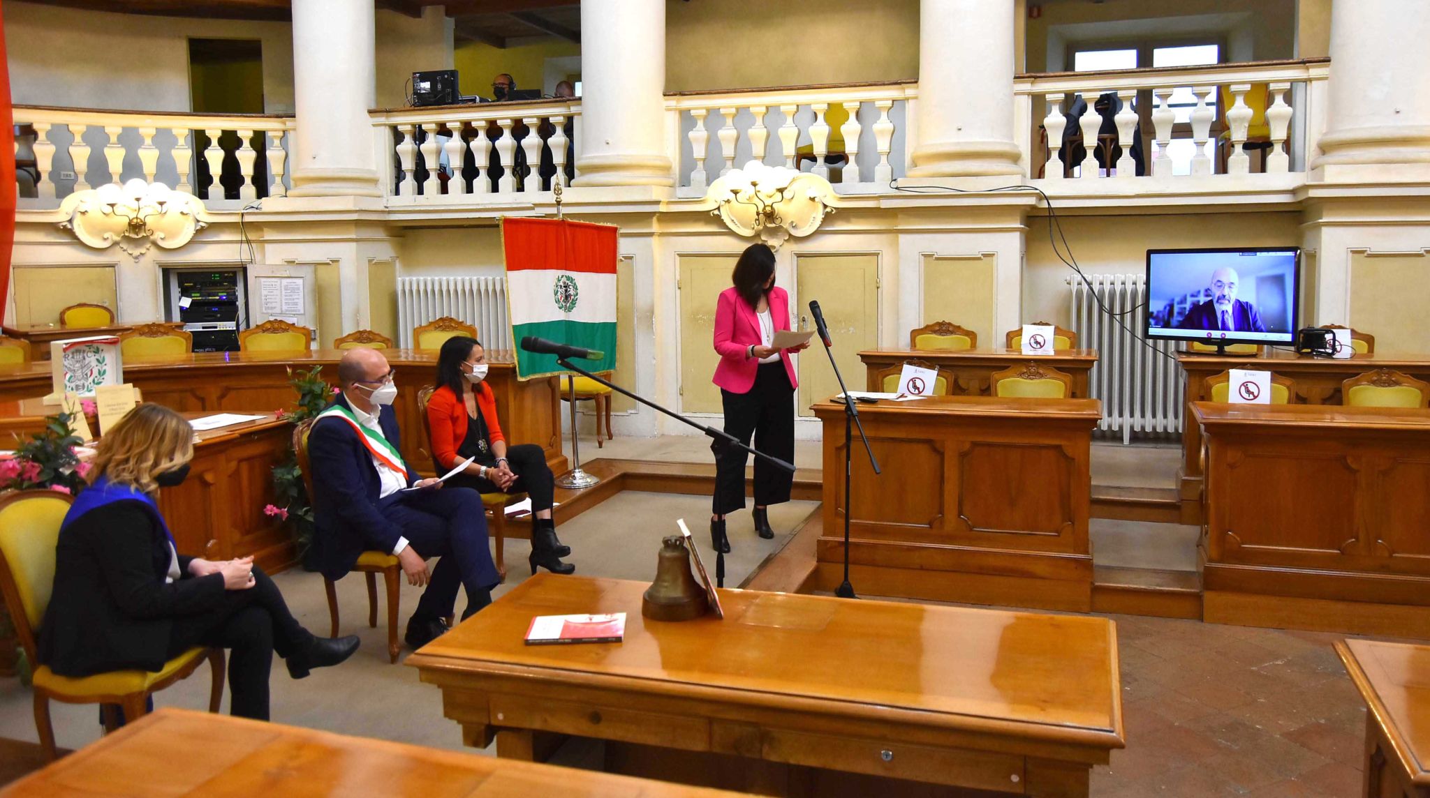 Alla cerimonia sono intervenuti il sindaco di Reggio Emilia Luca Vecchi, la vicepresidente della Provincia Ilenia Malavasi, l’assessora all’Educazione Raffaella Curioni e, in collegamento web, la presidente della Fondazione Nilde Iotti, onorevole Livia Turco e il dirigente dell’Ufficio scolastico provinciale Paolo Bernardi.