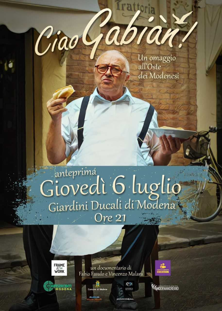 Un omaggio festoso dedicato all’oste dei modenesi e all’immortale trattoria di via Ganaceto. E’ quello di “Ciao Gabiàn”, il documentario su Ermes, che verrà presentato giovedì 6 luglio, alle ore 21, ai Giardini Ducali di Modena, nell’ambito della programmazione estiva promossa dal Comune di Modena in collaborazione con Studio’s.