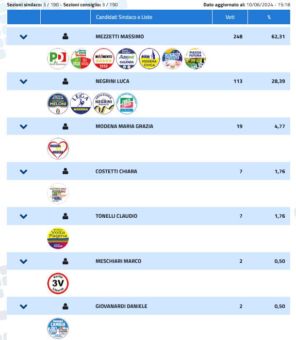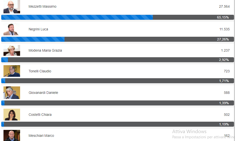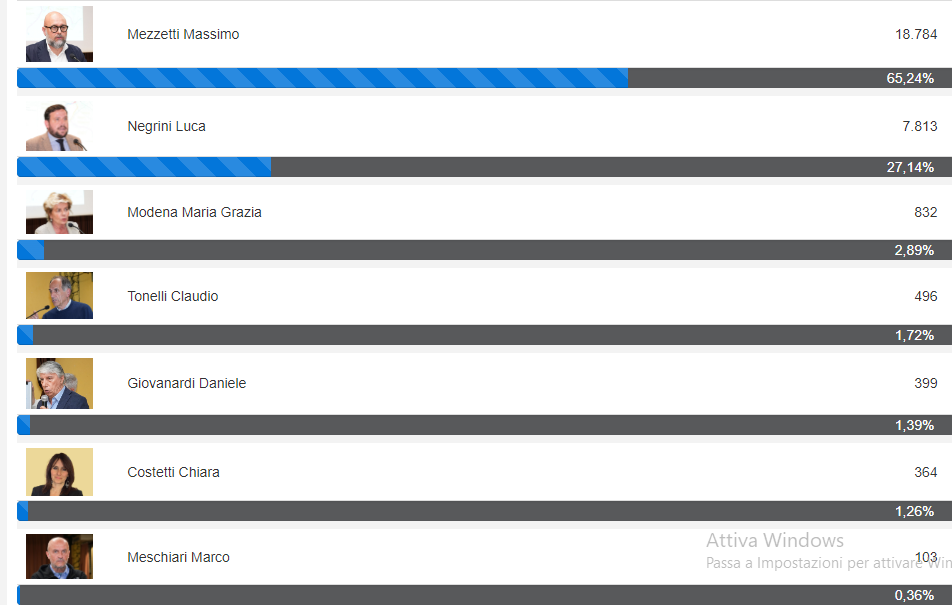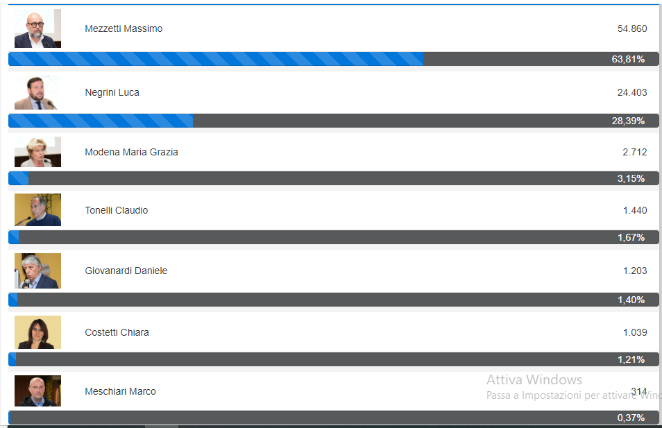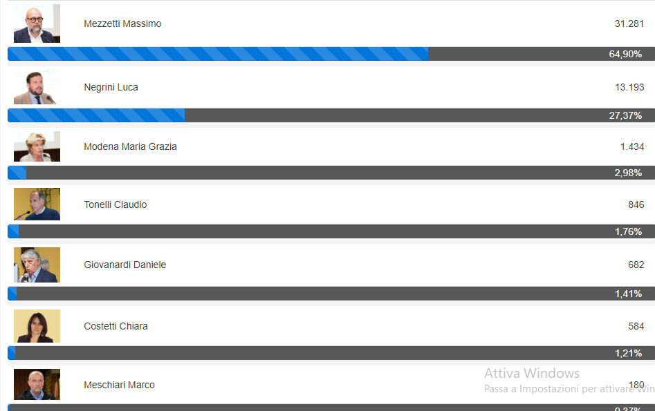 A Modena, sezioni scrutinate 67 su 190, fa il vuoto Massimo Mezzetti (centrosinistra).