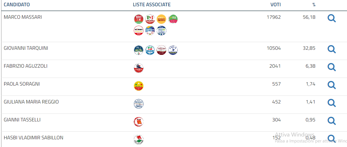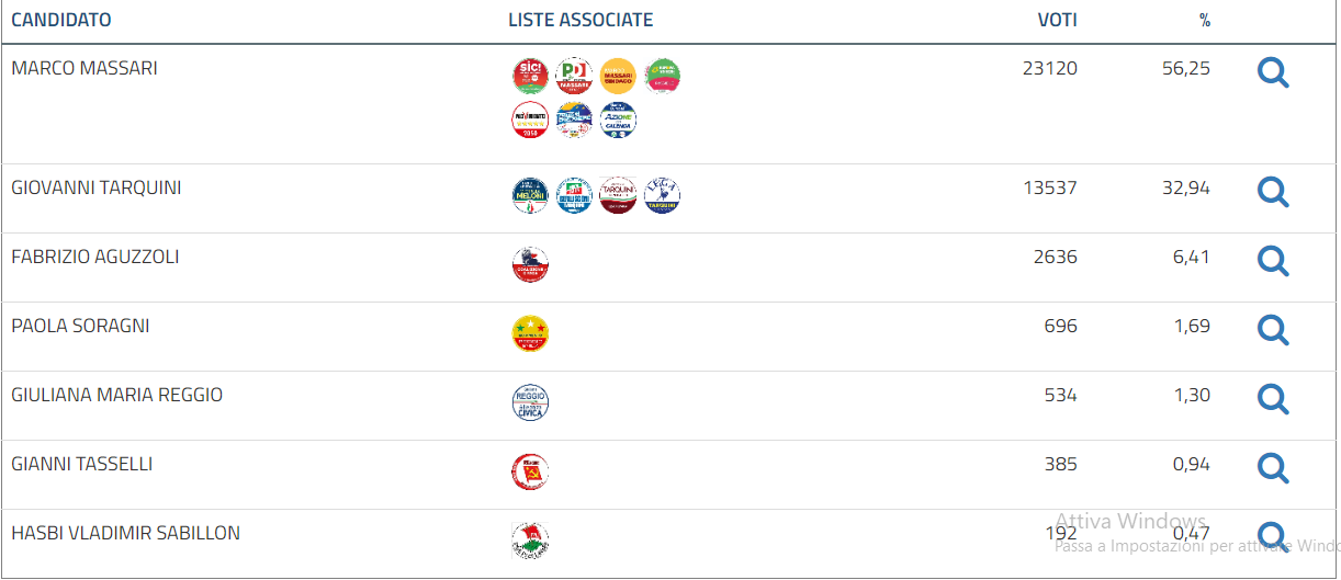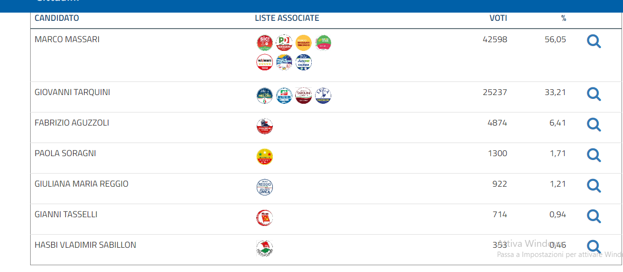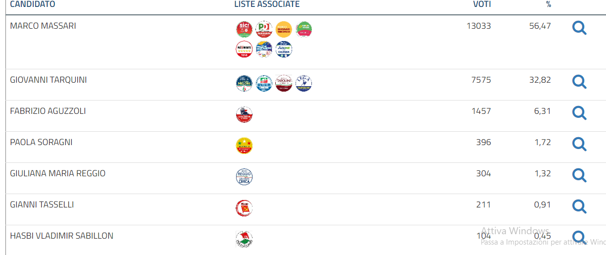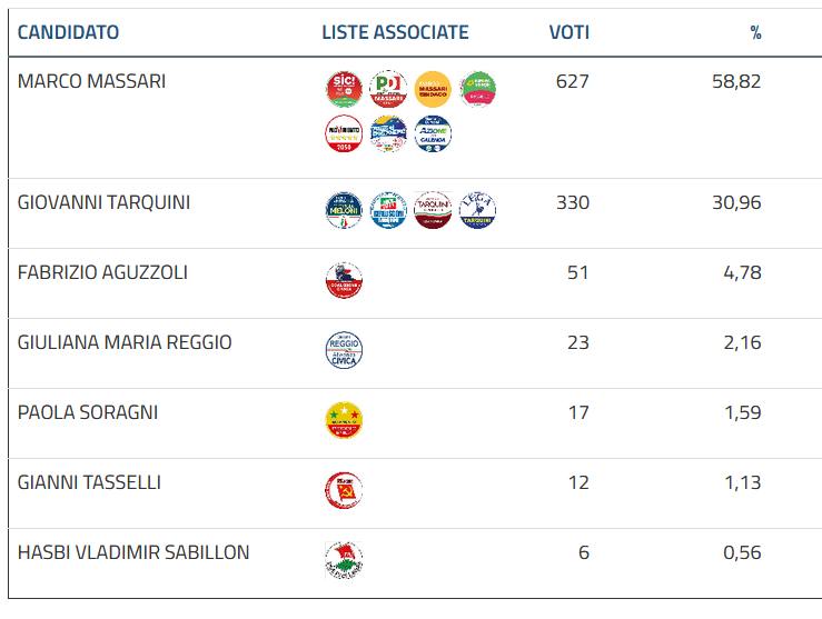 Reggio Emilia: 71 sezioni su 160, Marco Massari (centrosinistra) al 56,18%.