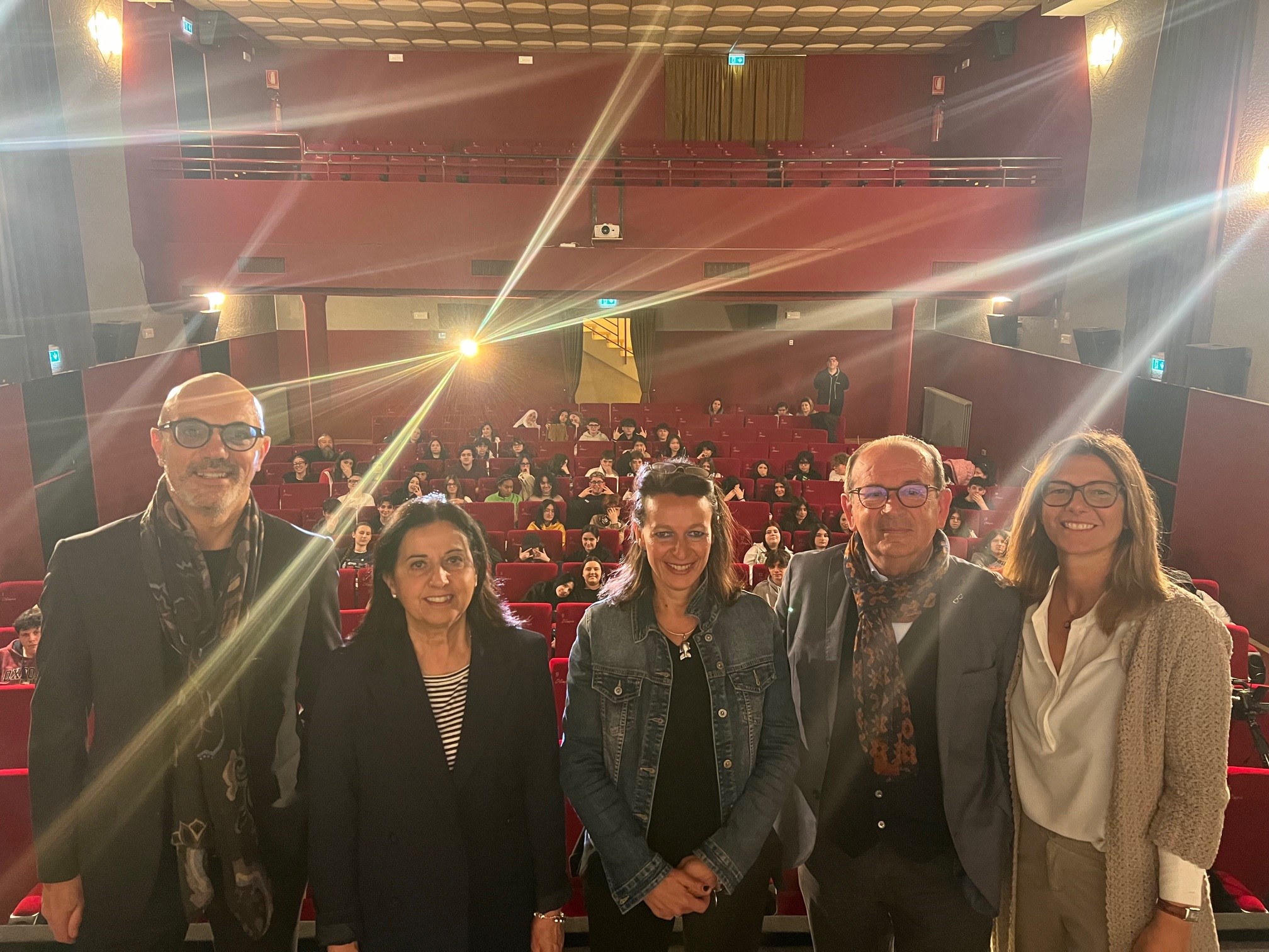 Al cinema, l’intervento di Raffaella Curioni, Assessore con delega a Educazione, Conoscenza, Città universitaria e Sport del Comune di Reggio Emilia: “Realizzare progetti con al centro le scuole significa avere attenzione e sensibilità a chi sarà grande protagonista del futuro delle nostre comunità e chi potrà cambiare e innovare i contesti economici, sociali e relazionali delle città