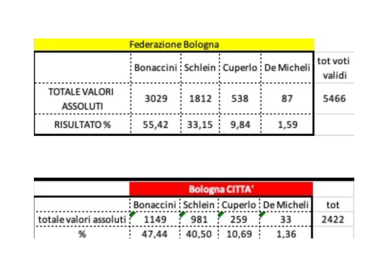La vittoria di Stefano Bonaccini è stata netta. Superiore alle previsioni della vigilia, conoscendo gli orientamenti nel dibattito che si è svolto nel PD bolognese. Bonaccini è il candidato di gran lunga più votato, con il 55,42% nella Federazione di Bologna (tutti i comuni della Città Metropolitana di Bologna compreso il capoluogo ed esclusi quelli del Circondario Imolese) e con il 47,44% anche nei circoli che fanno riferimento al solo comune di Bologna. Ora tutti al lavoro per una grande partecipazione alle elezioni primarie. Come comitato che sostiene la candidatura di Stefano Bonaccini già da domani saremo impegnati per il voto degli elettori democratici del 26 febbraio”. Così Andrea De Maria, deputato del Pd.