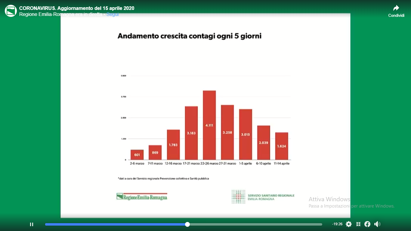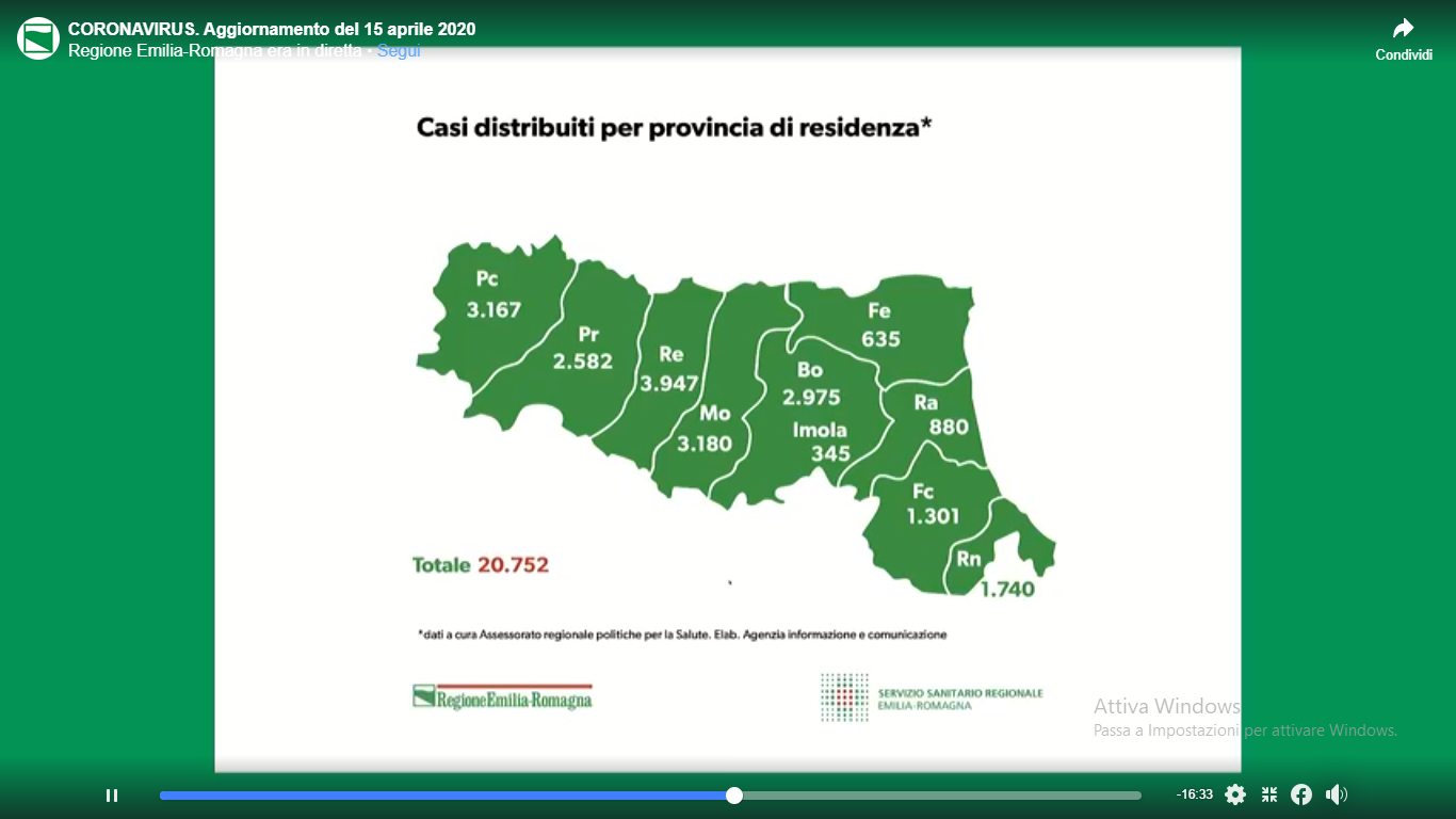 Nel corso del quotidiano aggiornamento sui numeri dell’epidemia del Coronavirus, il commissario per l’emergenza dell’Emilia-Romagna, Sergio Venturi, ha mostrato alcuni grafici, elaborati dalla Regione, che mostrano l’andamento della malattia.
