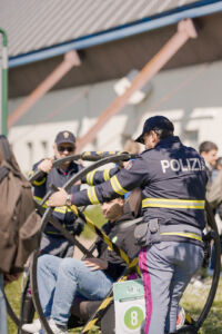 Nell’ultima sessione i ragazzi si sono spostati nel villaggio della sicurezza, allestito nel parcheggio del Palasport. I partner dell’iniziativa hanno fatto vivere ai giovani, nelle varie postazioni, un frammento dell’esperienza di un incidente: dalla guida in stato di ebbrezza con gli occhiali speciali di A22, ai simulatori di ACI, dai defibrillatori della Croce Rossa e del 118 all’etilotest della Polizia Stradale ai mezzi dei Vigili del Fuoco e della Polizia locale fino alla simulazione vera e propria di un intervento su veicoli incidentati.