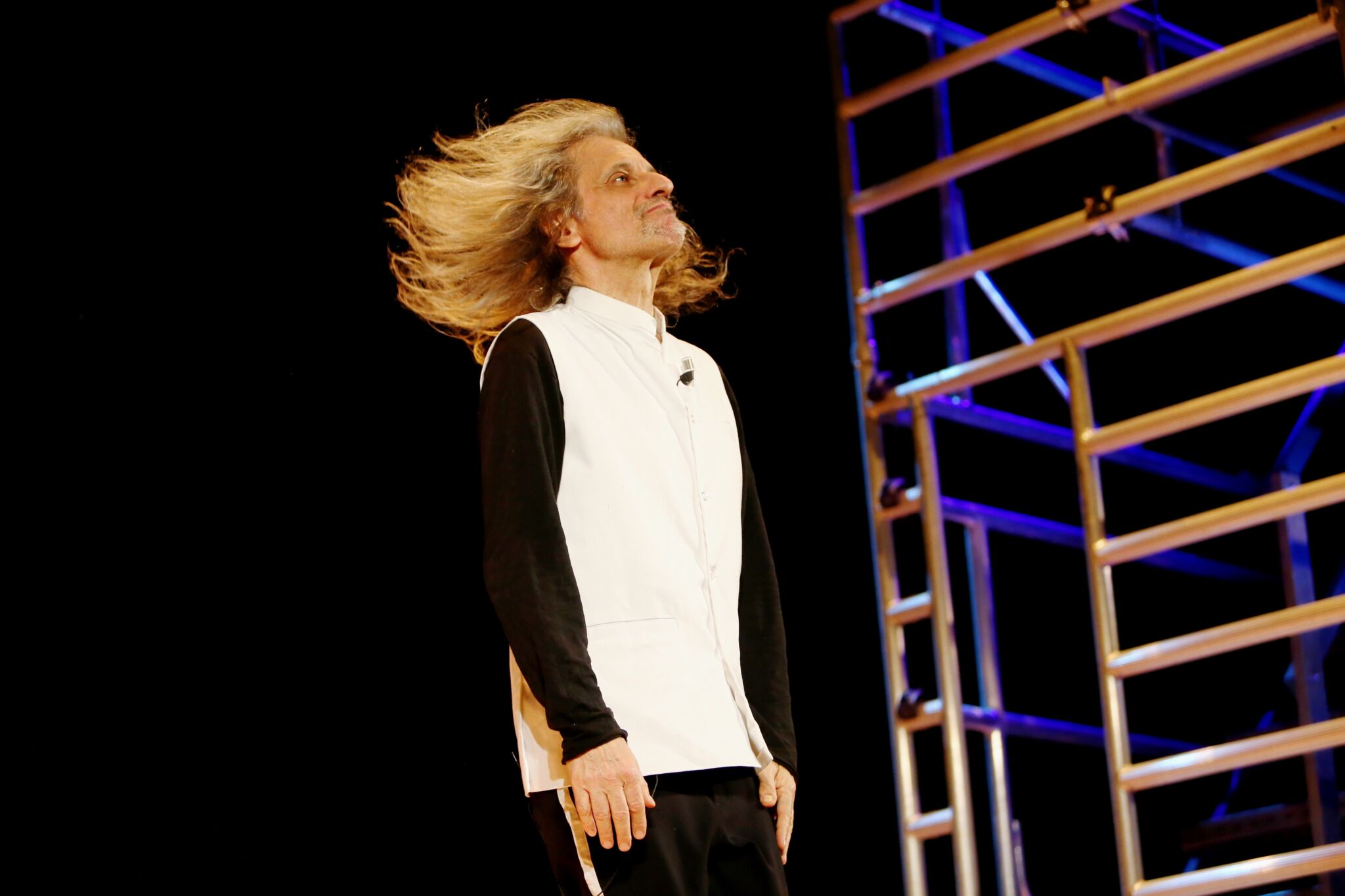 “Far p’arte, immedesimarsi, succedere, divenire, è per me avanguardia sociale, artistica, antroposofica, metafisica, e incandescenza. – dice Bergonzoni – Il laddove l’artista si espone non solo espone. Siamo opere operanti operabili, volti e corpi, visi o invisi, che, disegnati da Picasso o degli eventi, per grazia o disgrazia ricevuta, deformati o performanti, formidabili o informi, surreali e iperreali, cominciano a fondersi in ben altra dimensione, che chiamo “c’realtàd’altrista”, e non solo chiede mera condivisione, ma pura “nondivisione”, con figure che danzano mosse da anime con le dita, o fili adottivi di un “diomaggiore”. Sulla linea di “nonfine di nuovi tealtri”, esseri e luoghi a procedere e a precedersi.”