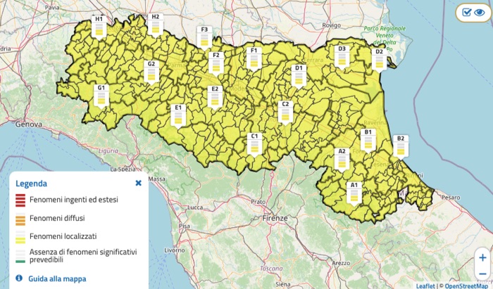 L’agenzia regionale per la sicurezza territoriale e la Protezione civile dell’Emilia-Romagna, sulla base delle previsioni dell’Arpae, ha diramato un’allerta gialla per temporali valida per l’intera giornata di domenica 13 luglio su tutto il territorio emiliano-romagnolo.