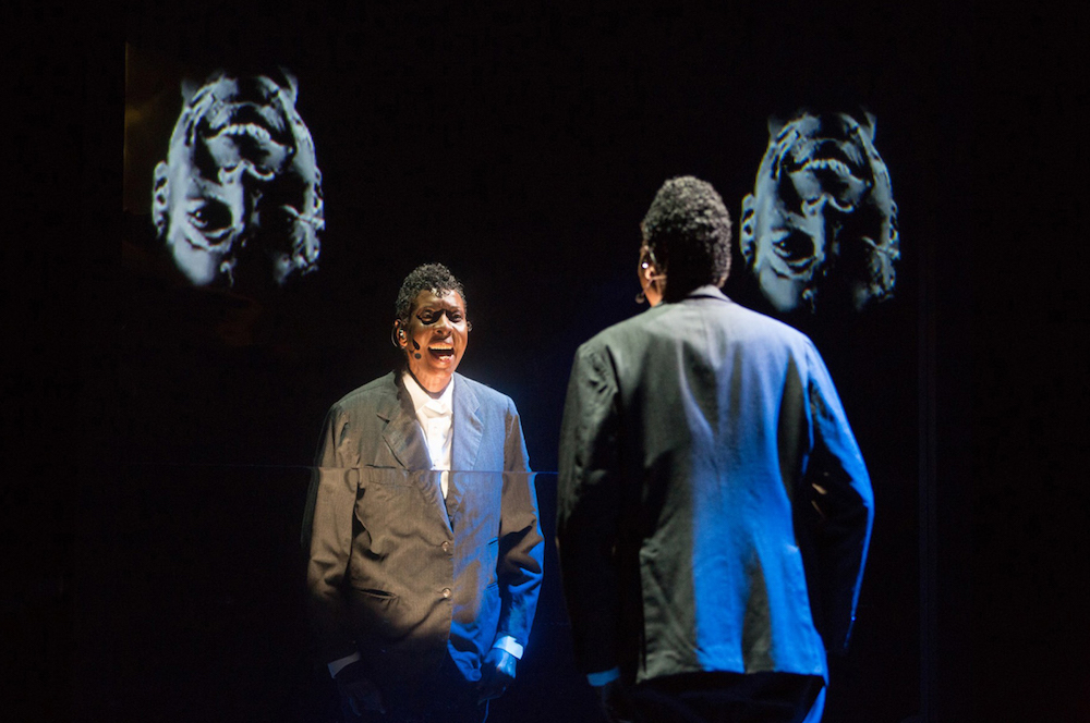 Trilogy in two ha una storia che parte da lontano. Nel 2008 Andrea Liberovici, compositore e autore da sempre impegnato in una ricerca che incrocia il teatro con la musica e le arti visive, esplora la figura del Faust attraverso una serie di pillole video prodotte per Rai 3 e inizia a pensare alla possibilità di trasformare quel primo embrione in uno spettacolo, con protagonista Helga Davis, artista interdisciplinare statunitense, interprete di lavori di Robert Wilson e Peter Greenaway. Dopo diverse tappe intermedie e spettacoli su personaggi analoghi, da Mefistofele a Frankenstein, nel 2016 debutta alla Philharmonie di Parigi Faust’s Box, finalmente interpretato dalla Davis, che nello stesso anno è protagonista del celebre riallestimento di Einstein on the Beach di Robert Wilson e Philip Glass, e da Ars Nova Ensemble.