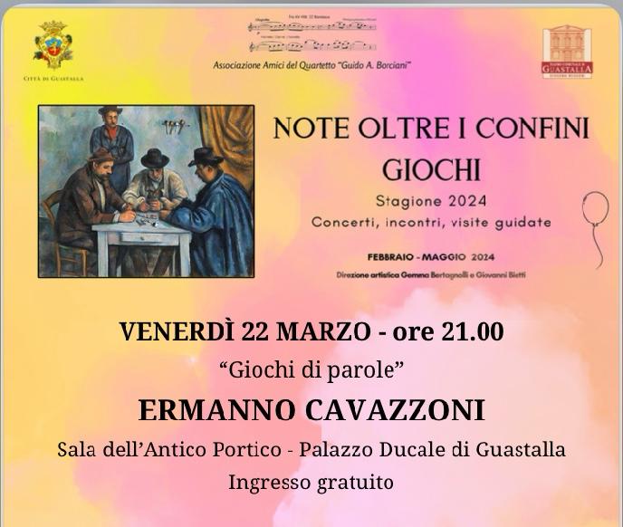 Venerdì 22 marzo, alle ore 21.00 presso la Sala dell’Antico Portico di Palazzo Ducale, si terrà “Giochi di parole”: incontro con Ermanno Cavazzoni.