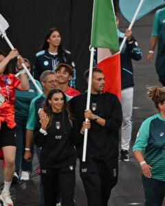 I due, che sono fidanzati da tre anni, hanno sfilato davanti alla delegazione italiana. Il campione di nuoto, che è stato impegnato fino alla fine con la gara nella contestata Senna, chiudendo la 10 km solo al nono posto, ha invece lasciato il segno in piscina con l’argento e il bronzo nei 1500 e 800 stile libero. La spadista si porta invece a casa l’oro nella prova a squadre.