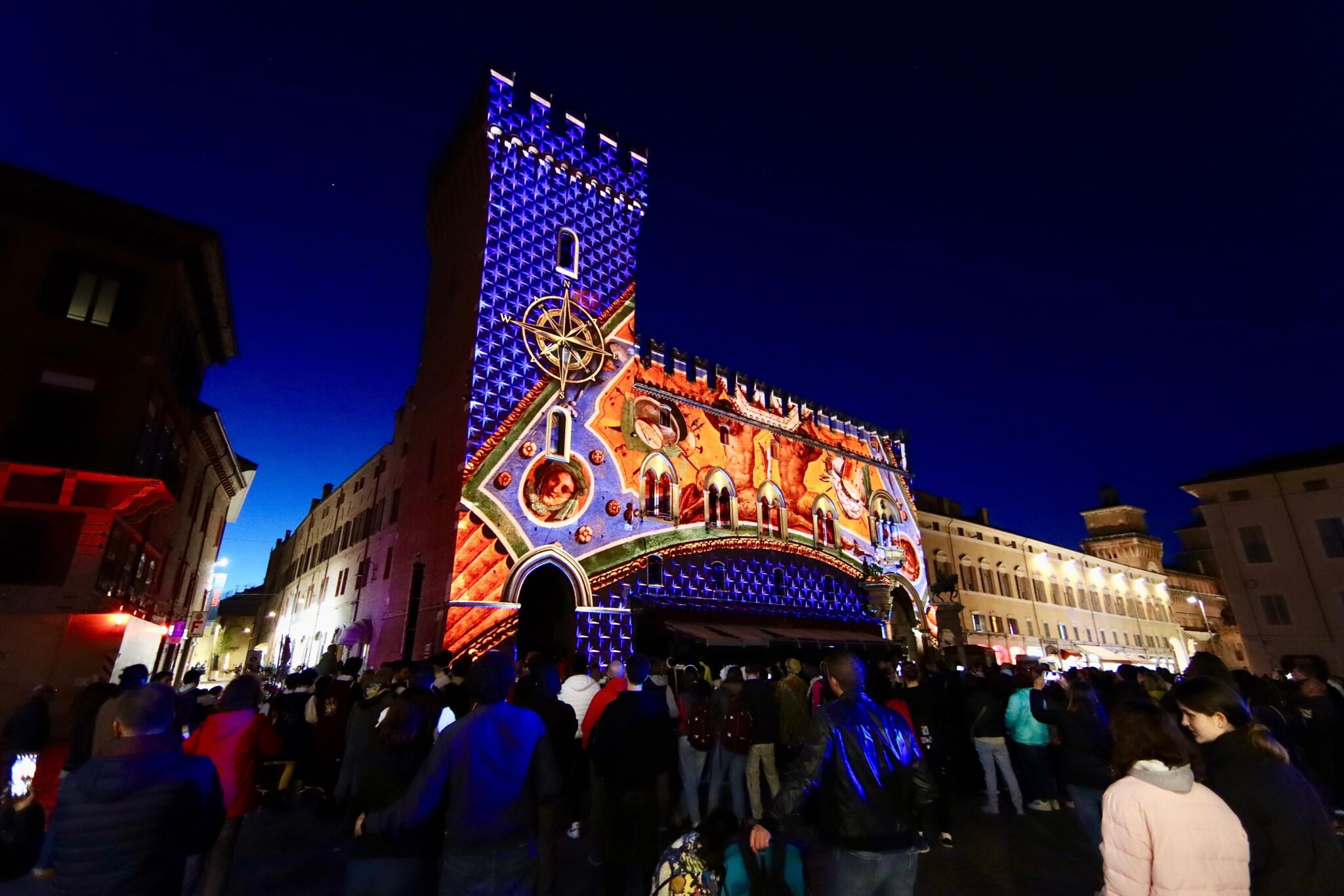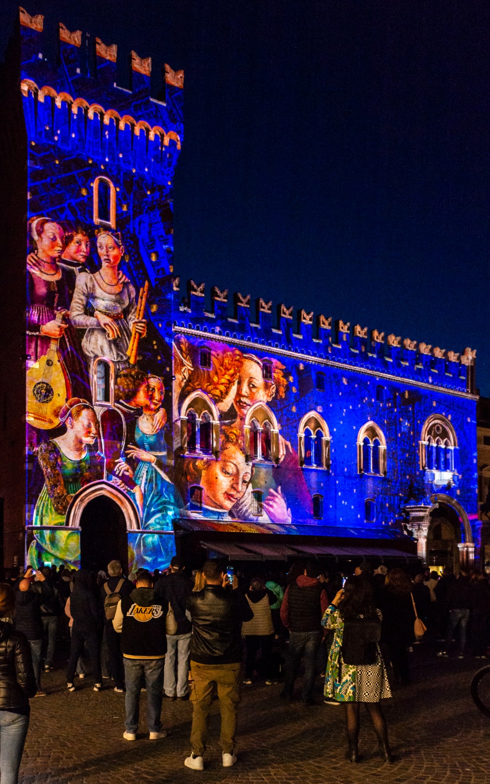 È stato inaugurato l’altra sera, alla presenza del sindaco, lo spettacolo di videomapping che, fino al 5 maggio, per quattro sere consecutive (ogni sera a partire dalle ore 21 e fino all’1 di notte) illuminerà l’antica facciata del palazzo Ducale di Ferrara – un tempo la residenza degli Este – con una delle storie più caratteristiche ed evocative della città estense, quella del suo Palio. L’evento, ieri, è stato preceduto da uno spettacolo in piazza della Cattedrale che ha coinvolto tutte e otto le contrade di Ferrara e la Corte ducale con i figuranti, i musici e gli sbandieratori della Fondazione Palio Città di Ferrara.