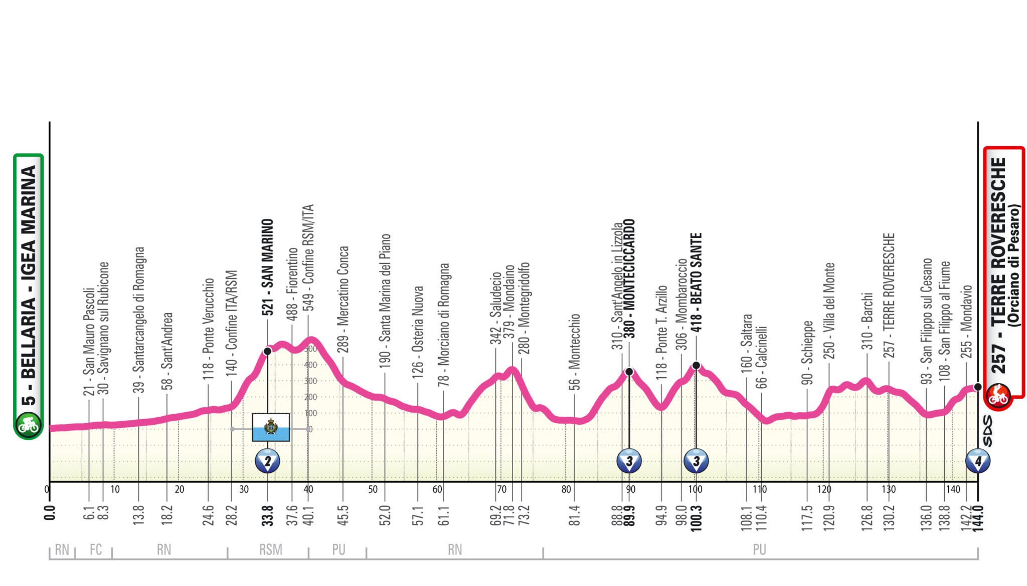 Appuntamento dal 6 al 13 luglio per il Giro Women che farà il suo ingresso in Emilia-Romagna l’11 luglio con i 144 km della tappa Bellaria Igea Marina (Rn)-Terre Roveresche (Pu). Partenza nel cuore della Riviera emiliano-romagnola tra le province di Rimini e Forlì-Cesena e le località di San Mauro Pascoli, Savignano sul Rubicone, Santarcangelo di Romagna, Sant’Andrea, Ponte Verucchio. Poi l’ingresso nel territorio della Repubblica di San Marino e della regione Marche e da qui il ritorno in territorio riminese a Santa Maria del Piano, Osteria Nuova, Morciano di Romagna, Saludecio, Mondaino, Montegridolfo.