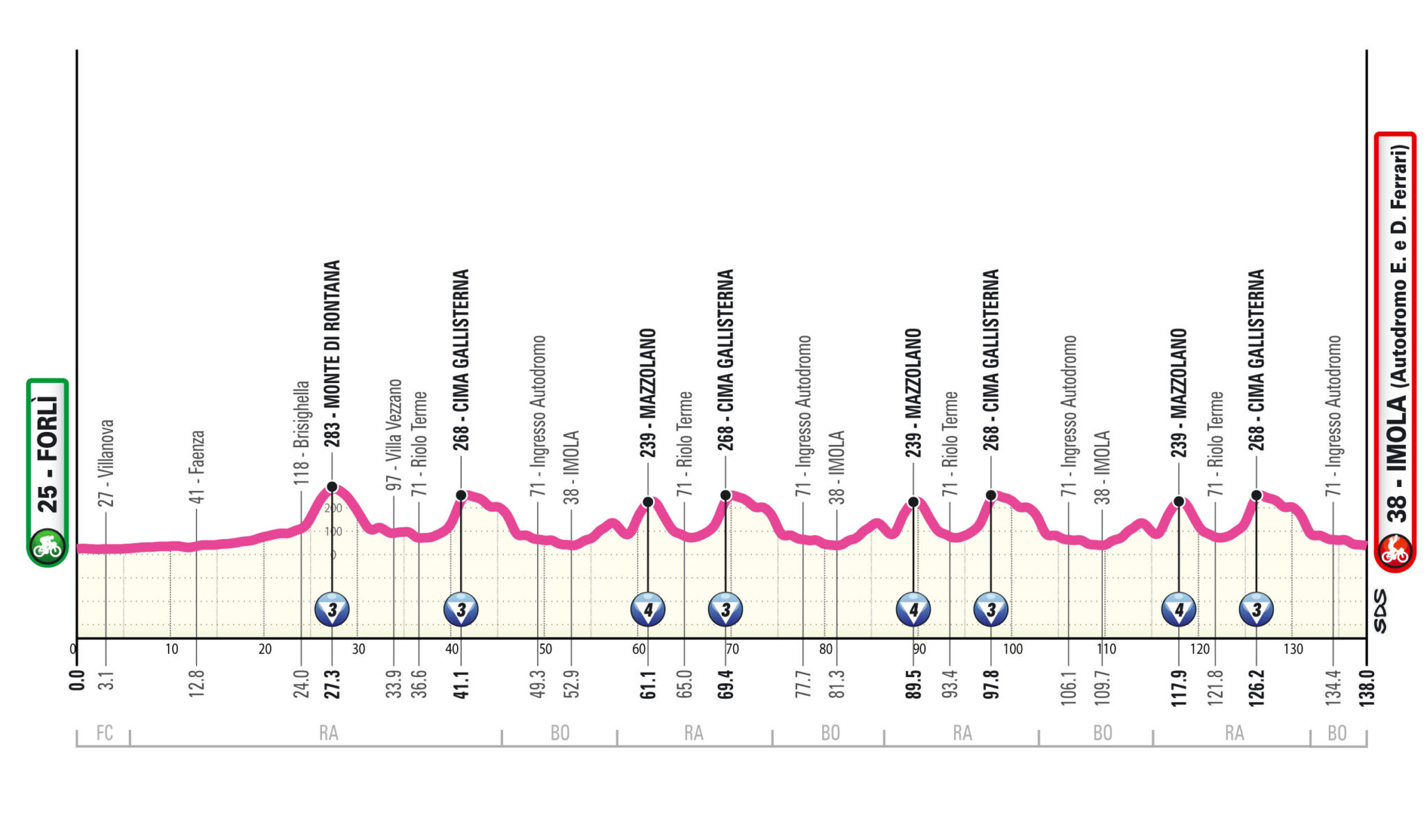 Il 13 luglio la tappa conclusiva Forlì-Imola di 138 km con il gran finale all’Autodromo Enzo e Dino Ferrari. Un tempio dei motori che si apre ancora una volta al grande ciclismo. Come nel 1968 con l’edizione del Mondiale su strada che vide il trionfo del parmense Vittorio Adorni e poi nel 2020, con un’altra straordinaria edizione del Mondiale organizzata in piena pandemia, grazie anche al sostegno della Regione Emilia-Romagna. E proprio il circuito del Mondiale 2020, ripetuto quattro volte, sarà riproposto nell’ edizione 2025 del Giro Women con le ascese di Mazzolano e della Cima Gallisterna.