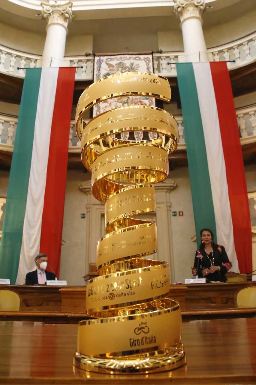 Quale segno del legame della città emiliana con la Corsa Rosa, Rcs Sport – Gazzetta dello Sport, promotore e organizzatore del Giro d’Italia, ha reso possibile l’esposizione – oggi nella Sala del Tricolore in occasione della presentazione del programma di iniziative di avvicinamento alla 11^ tappa “Arriva il Giro!” – del Trofeo Senza Fine che sarà assegnato al vincitore del Giro d’Italia 2022.