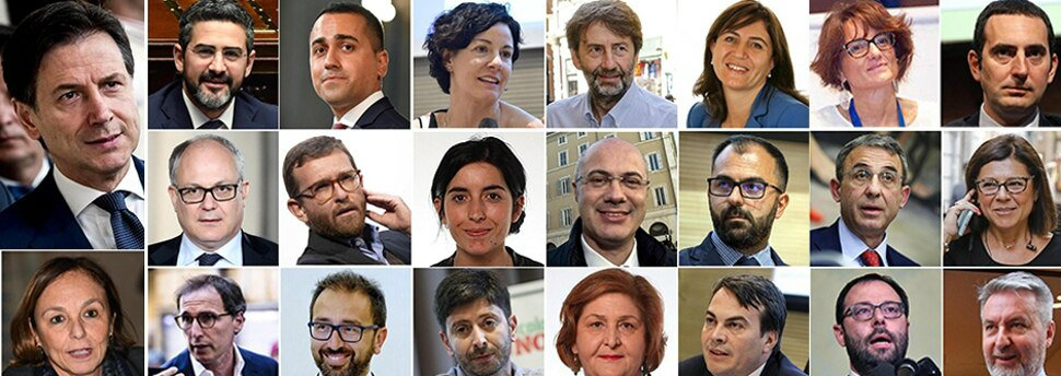 L’elenco dei componenti del secondo governo presieduto da Giuseppe Conte: Federico d’Incà – Rapporti con il Parlamento; Paola Pisano – Innovazione tecnologica e la digitalizzazione; Fabiana Dadone – Pubblica amministrazione; Francesco Boccia – Affari regionali e le autonomie; Giuseppe Provenzano – Sud; Vicenzo Spadafora – Politiche giovanili e sport; Elena Bonetti – Pari opportunità e la famiglia; Enzo Amendola – Affari Europei; Luigi Di Maio – Esteri; Luciana Lamorgese – Interno; Alfonso Bonafede – Giustizia; Lorenzo Guerini – Difesa; Roberto Gualtieri – Economia e Finanze; Stefano Patuanelli – Sviluppo economico; Teresa Bellanova – Politiche agricole alimentari e forestali; Sergio Costa – Ambiente; Paola De Micheli – Infrastrutture e trasporti; Nunzia Catalfo – Lavoro e politiche sociali; Lorenzo Fioramonti – Istruzione; Dario Franceschini – Beni culturali e turismo; Roberto Speranza – Salute.