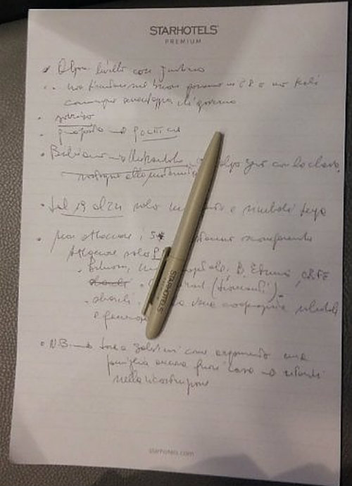 Una foto-notizia apparsa su Repubblica. it riporta un foglietto con gli 8 punti di linea comunicativa della Lega, presumibilmente (scrive Repubblica) dimenticato domenica all’Hotel Excelsior di Bologna da un militante del Carroccio dopo l’incontro tra Matteo Salvini e i candidati alle regionali del 26 gennaio.
