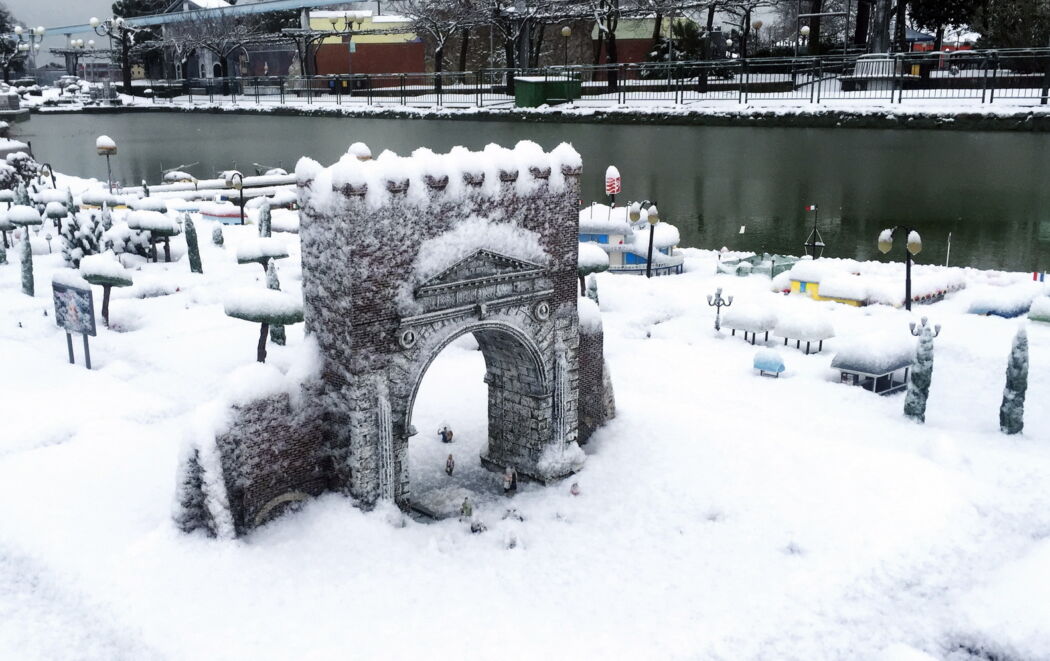 Basta un velo di neve su Rimini, come quella caduta giovedì 9 febbraio, perché il parco tematico Italia in Miniatura si trasformi in un fiabesco paesaggio nordico.