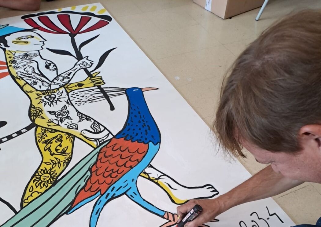 L’arte come forma di crescita personale e di apporto alla società, una chiamata per la quale non c’è tempo da perdere, soprattutto quando si è giovani e al talento va affiancata dedizione e forza realizzativa. Con questo messaggio l’illustratore e artista catalano Ignasi Blanch ha salutato i ragazzi del Liceo Chierici dopo alcuni giorni passati con loro, invitato a Reggio Emilia nell’ambito del progetto di mobilità europea Erasmus voluto come incontro e restituzione alla cittadinanza, anche quest’anno, dalla professoressa Paola Panciroli. Convinta dell’importanza per gli studenti di conoscere e confrontarsi con culture e paesi diversi, dopo aver reso possibile ad alcuni liceali di frequentare le lezioni di Blanch alla “Escola de la Dona” di Barcellona in cui l’artista insegna e coordina il dipartimento di illustrazione, lo ha invitato in città perché con una classe, la quarta B, potesse lavorare sul tema scelto per l’edizione 2023 dell’Erasmus Day, la diversità.