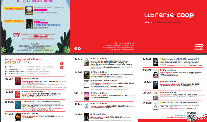 Classifiche relative alla settimana dal 19 al 27 ottobre 2023, realizzate in collaborazione con Librerie.coop all’Arco di Reggio Emilia.