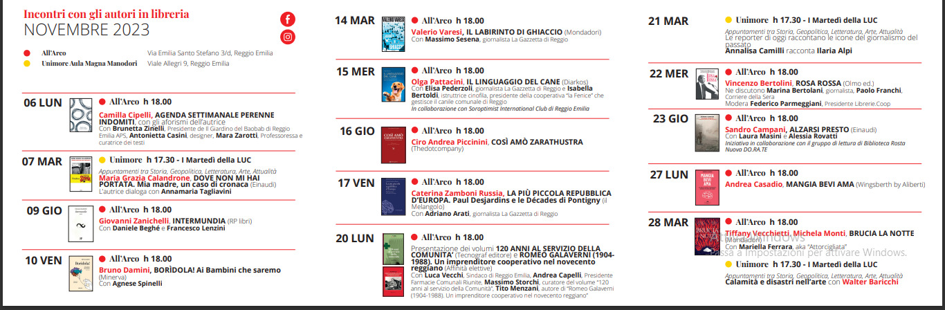 Classifiche relative alla settimana dal 9 al 16 novembre 2023, realizzate in collaborazione con Librerie.coop all’Arco di Reggio Emilia.