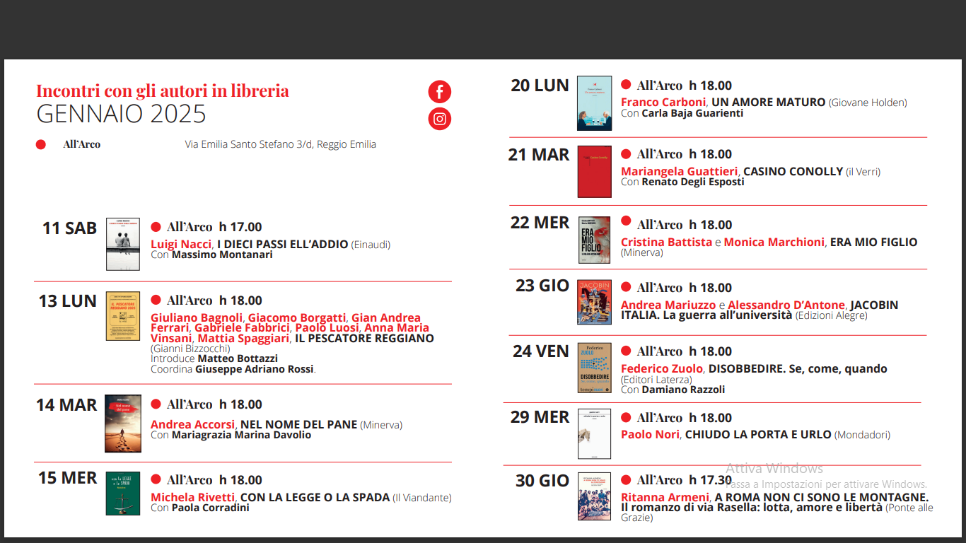 Classifiche relative alla settimana dal 16 al 24 gennaio 2025, realizzate in collaborazione con Librerie.coop all’Arco di Reggio Emilia.