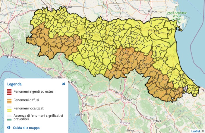 L’Agenzia regionale per la sicurezza territoriale e la protezione civile dell’Emilia-Romagna, sulla base delle previsioni del centro funzionale regionale dell’Arpae, ha diramato un’allerta meteo arancione per temporali su quasi tutta la fascia appenninica (e gialla, sempre per temporali, in tutto il resto della regione) valida per l’intera giornata di lunedì 5 maggio.