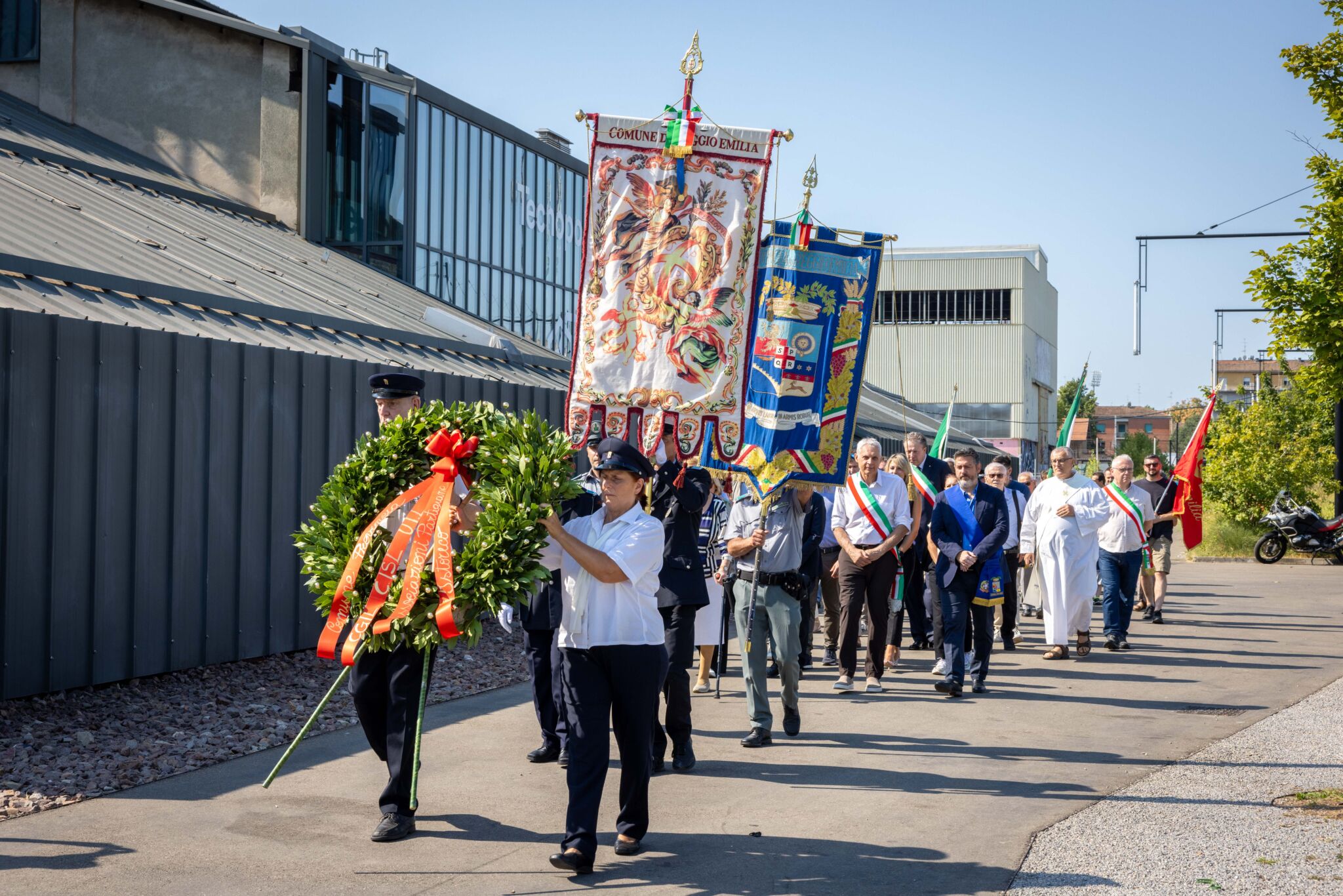 Sono stati commemorati stamani, nell’81° anniversario dell’eccidio, i Martiri delle Officine Reggiane di Reggio Emilia: Domenica Secchi, che era incinta, Antonio Artioli, Vincenzo Bellocchi, Eugenio Fava, Nello Ferretti, Armando Grisendi, Gino Menozzi, Osvaldo Notari, Angelo Tanzi. Morirono ai cancelli delle grandi Officine sulla via Agosti, tre giorni dopo l’approvazione dell’ordine del giorno Grandi da parte del gran consiglio del fascismo per la destituzione di Mussolini.