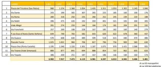 “Ma poi il confronto con l’anno prima serve a poco. Dalle tabelle del comune sulla mobilità vediamo che 10 anni fa gli accessi erano 7.917, per poi calare nel 2013 a 7.473, nel 2014 a 6.119 per poi finire a quelli dell’oggi dei 5.484”.