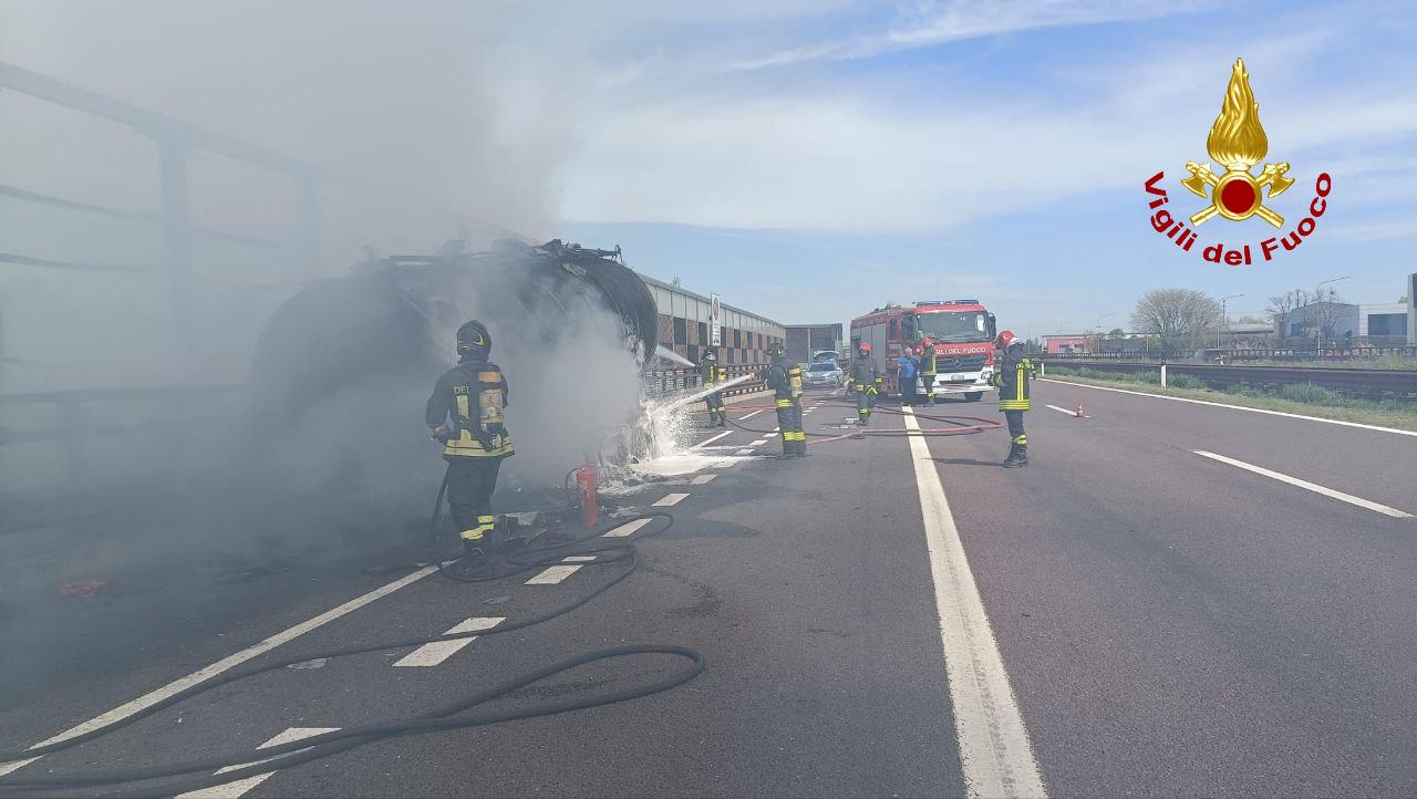 Poco prima di mezzogiorno in corsia sud A22 Brennero km 299 incendio di un rimorchio trasporto latte, la motrice è stata staccata in tempo. Sono intervenuti sul posto i vigili del fuoco di Carpi con botte e prima partenza più supporto VVF Suzzara.