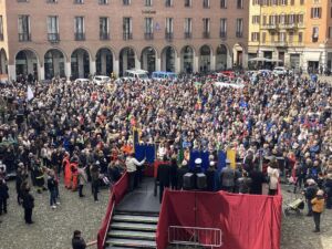 “Il tempo della Resistenza è adesso: quando il mondo è attraversato da un grande bisogno di Liberazione, quando infuriano le guerre, quando l’umanità sembra smarrire il senso del futuro. È oggi il tempo del sogno che percorre le strade, anche di Modena, come in quel 25 aprile di 79 anni fa”. Lo ha affermato questa mattina Albertina Soliani, presidente dell’Istituto Alcide Cervi e vicepresidente nazionale dell’Anpi, che oggi, giovedì 25 aprile, ha partecipato con il sindaco di Modena Gian Carlo Muzzarelli e il presidente della Provincia Fabio Braglia, alla manifestazione per celebrare la Festa della Liberazione che, come ogni anno, si tiene in piazza Grande. Presente anche la prefetta Alessandra Camporota.