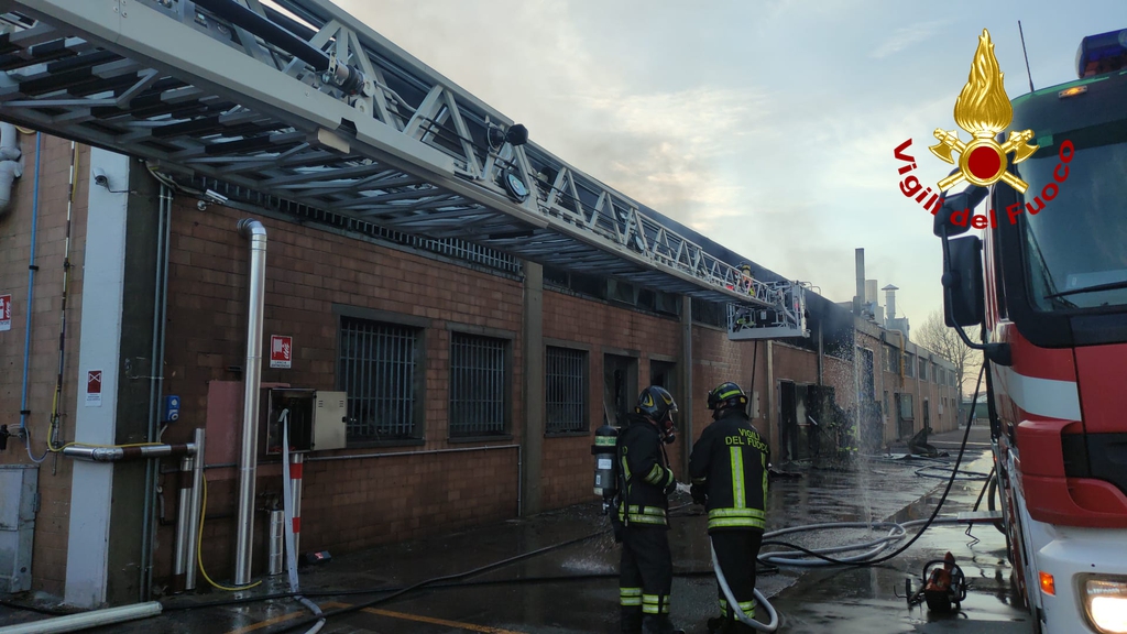 L’incendio in corso fino al tardo pomeriggio, ma sotto controllo, ha interessato il reparto produttivo dell’azienda, e in particolare un lungo nastro trasportatore.