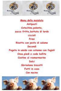 Il ristorante Nizzoli – che Arneo gestiva insieme alla moglie Rina Albertini (della famiglia del campione del Milan, Demetrio) e ai figli Dario e Massimo – era celebre soprattutto per le mitiche “Maialate”, cene succulente di pura esaltazione della cucina padana. Con buona pace di vegetariani e vegani, a cui sconsigliamo vivamente la lettura del seguente menu…