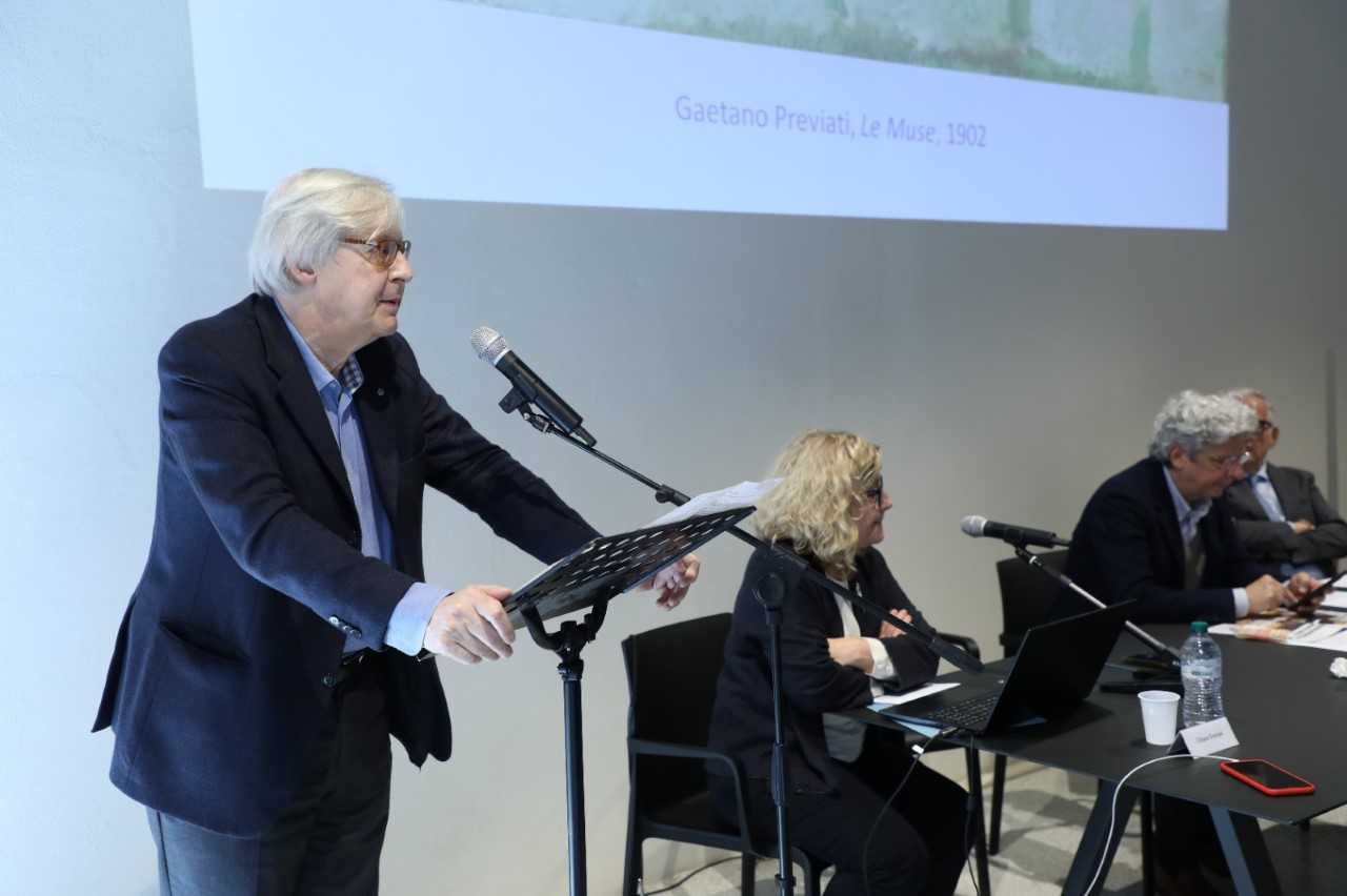 «Un ottimo acquisto – per Vittorio Sgarbi, sottosegretario alla cultura e presidente della Fondazione Ferrara Arte – che oggi diventa bene pubblico con questa donazione». Il miglior modo per garantire la salvaguardia di questo tipo di opere, per Vittorio Sgarbi, è infatti l’acquisto e la conservazione in un museo pubblico, «lasciarla nel libero mercato sarebbe stato un errore e l’avrebbe portata in luoghi non pertinenti né con l’Italia, né con la gloria ferrarese di Gaetano Previati». Per Sgarbi, inoltre, le «Le Muse – che è stato era uno dei cinque dipinti di Previati, tre tele e due disegni, presenti nella sua collezione – è particolarmente interessante perché con essa recuperiamo anche tutta l’ansia musicale di Toscanini, che si lascia ispirare da questo quadro. Per lui è come uno spartito e vede nel lavoro dello straordinario pittore, che è passato e presente, qualcosa che gli ispira un’emozione».