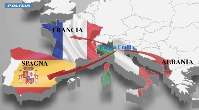 Gli arresti e le perquisizioni, oltre che nelle province di Reggio, Bergamo, Brescia e Savona, sono in corso anche in Francia, Spagna e Albania, grazie a un coordinamento operativo con le autorità di polizia straniere, in particolare con il Dipartimento della Polizia criminale albanese.