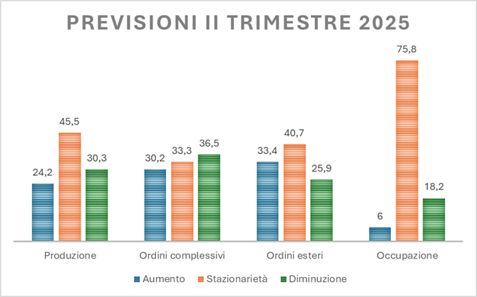 Sul fronte occupazionale, la maggioranza delle imprese (il 75,8%) prevede una sostanziale stabilità, mentre soltanto il 6% preconizza possibili nuove assunzioni; il 18,2% delle aziende, invece, si attende una riduzione del personale.