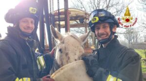 Alla presenza di un veterinario e con l’ausilio di fasce e altre strumentazioni per lo spostamento di carichi, la squadra è riuscita a rimettere il cavallo in posizione corretta, alimentarlo e salvarlo.