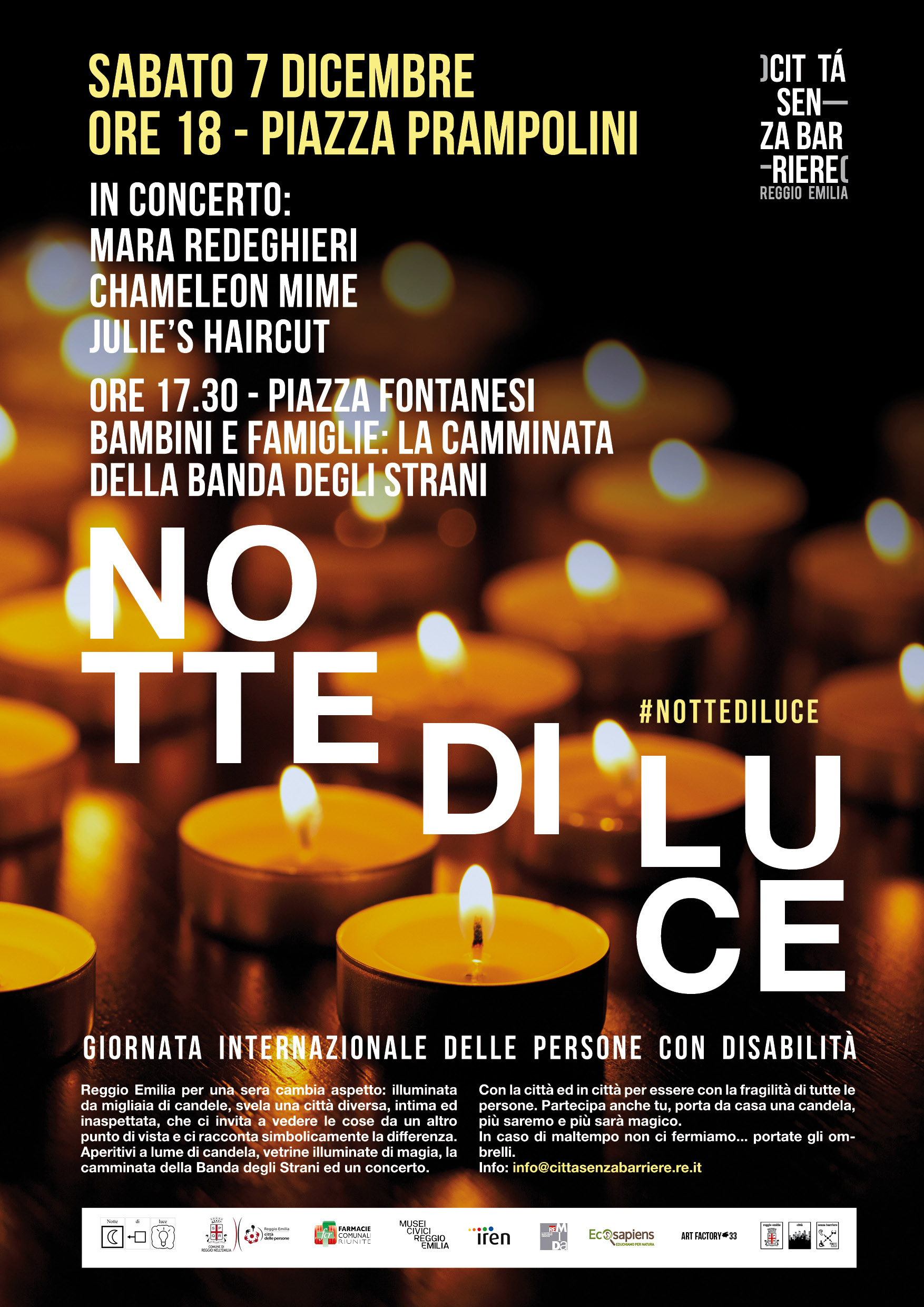 Sabato 7 dicembre torna “Notte di luce”: anche quest’anno, in occasione della Giornata internazionale delle persone con disabilità, istituita dall’Onu nel 1981, Reggio Emilia celebra questa ricorrenza con un evento speciale a lume di candela.