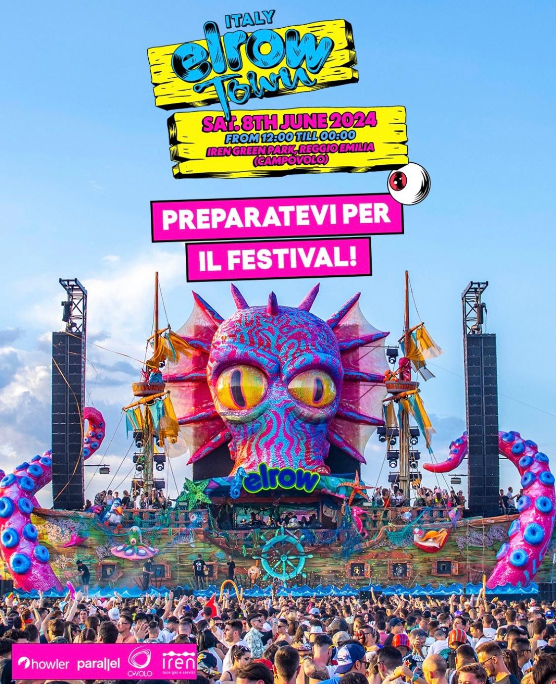 Conto alla rovescia per Elrow Town, l’evento per la prima volta in Italia, ospitato nel boulevard della Rcf Arena, l’Iren Green Park, che si svolgerà a Reggio Emilia dalle 12 alla mezzanotte di sabato 8 giugno (qui sotto video Elisa Alloro).