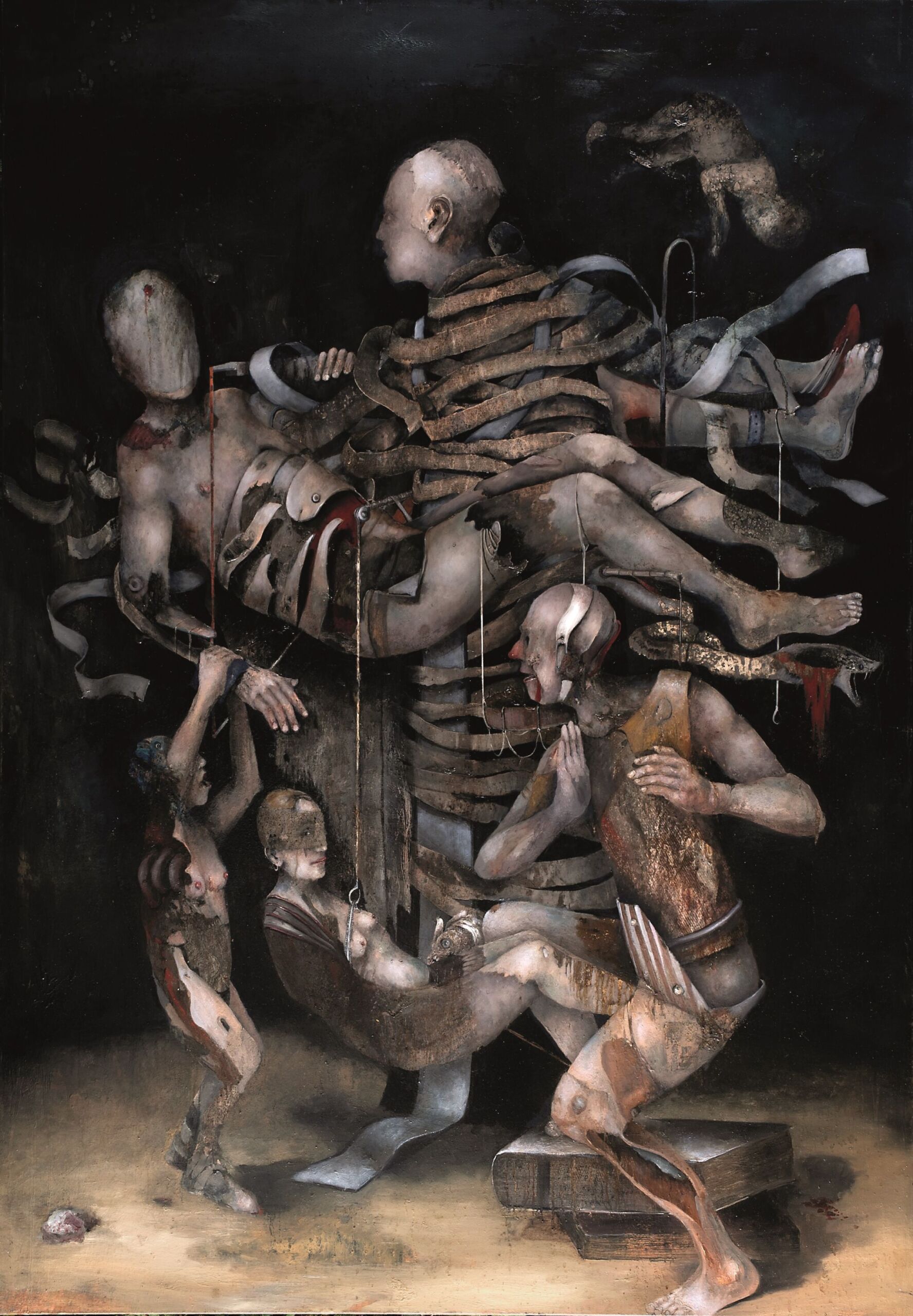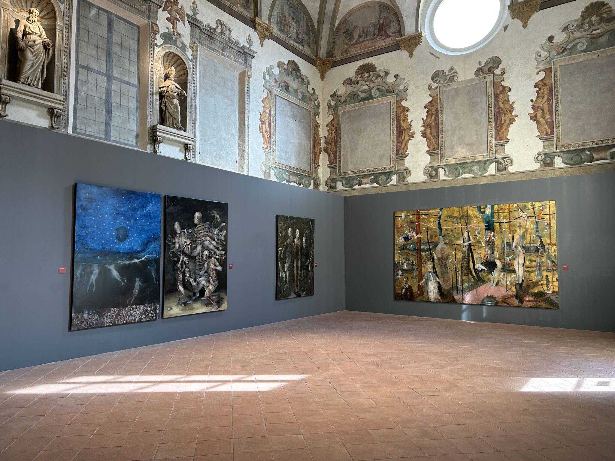 Organizzata dalla Fondazione The Bank – Istituto per gli studi sulla pittura contemporanea, con il patrocinio del Comune di Modena, la personale è curata da Cesare Biasini Selvaggi con Francesca Baboni e Stefano Taddei e raccoglie un’ampia selezione di dipinti di grandi dimensioni. Una pittura figurativa visionaria che si fonda su composizioni fantastiche quanto allucinate, scene inquietanti, paesaggi incendiati da venature crudeli e qualche pennellata di mélo, tra onirico e mostruoso, delizia e oscenità.